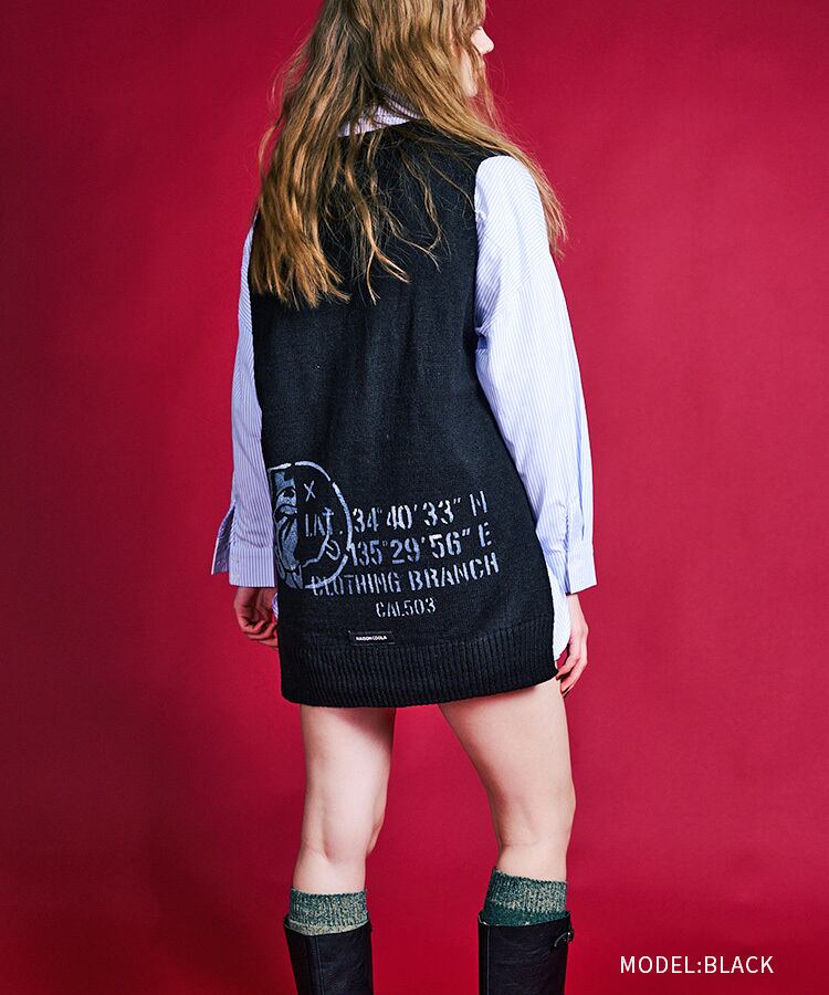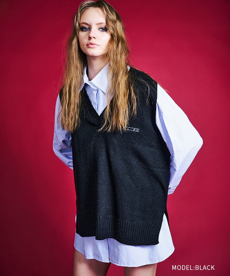 バックペイントオーバーサイズニットベスト (BLACK) CQ-47035