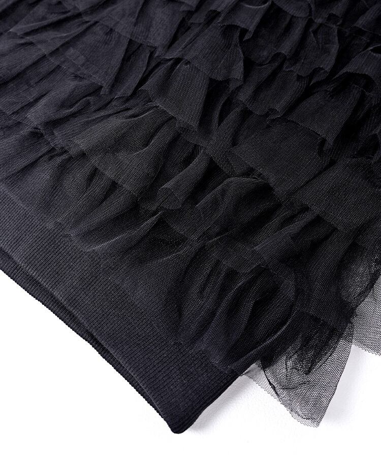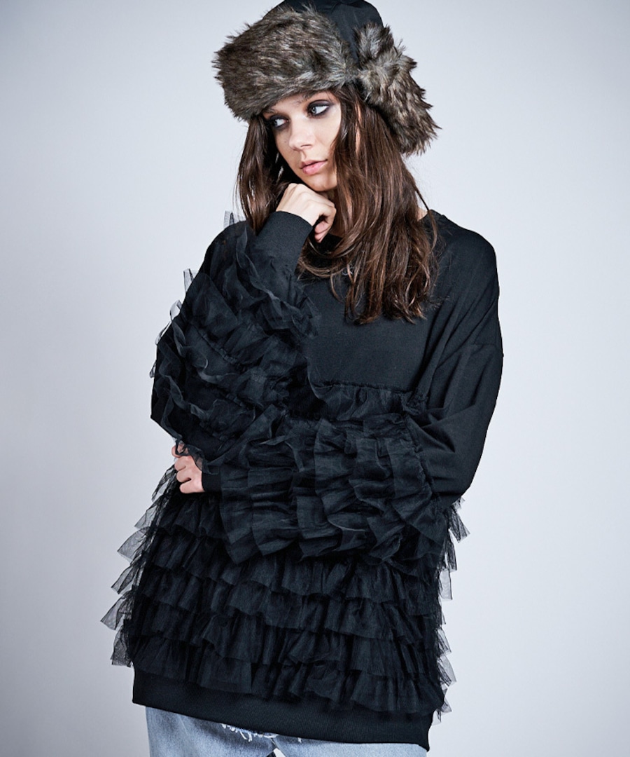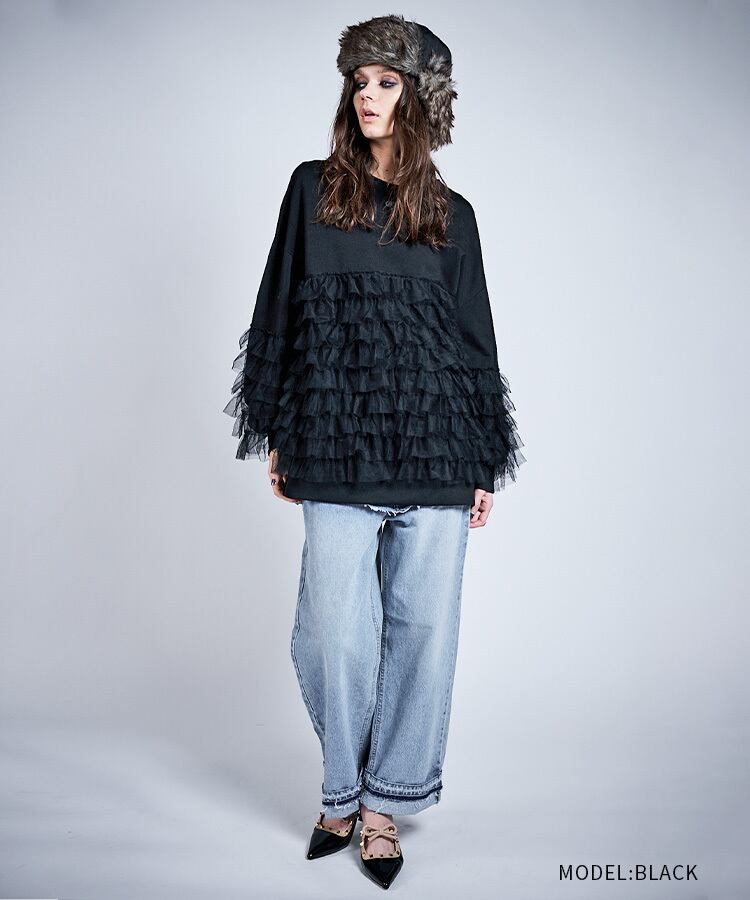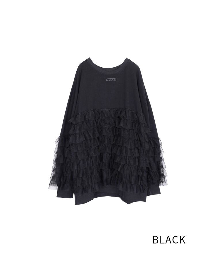 チュールフリルスイッチングルーズスウェット (BLACK) CQ-47018