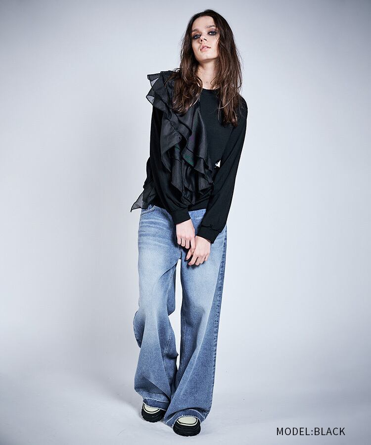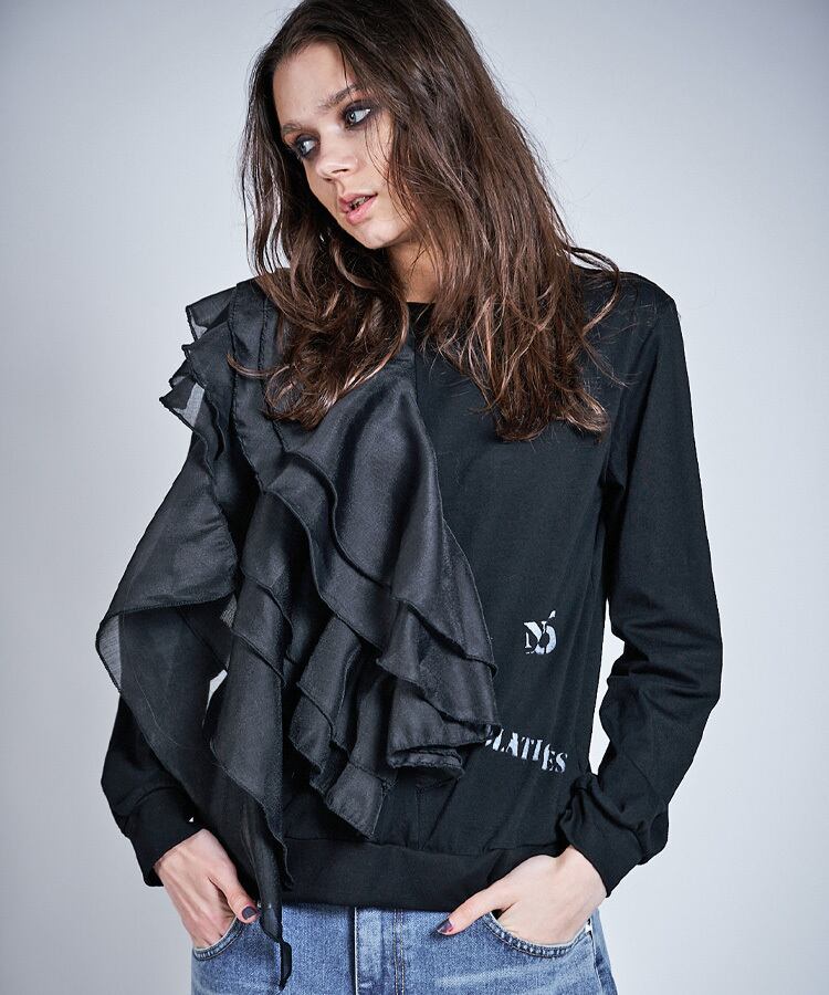 フロントフリルペイント L/S Tシャツ (BLACK) CQ-47019