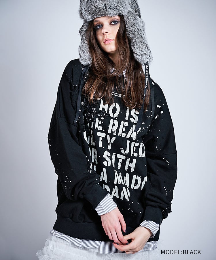 ロゴプリントヴィンテージルーズTOPS (BLACK) CQ-47029