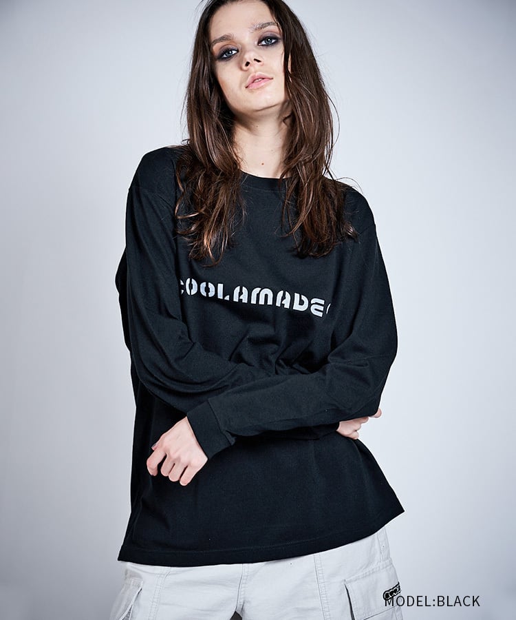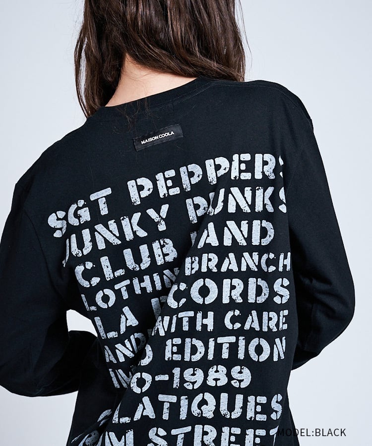 COOLAメッセージプリントルーズロングスリーブTシャツ (BLACK) CQ-47010