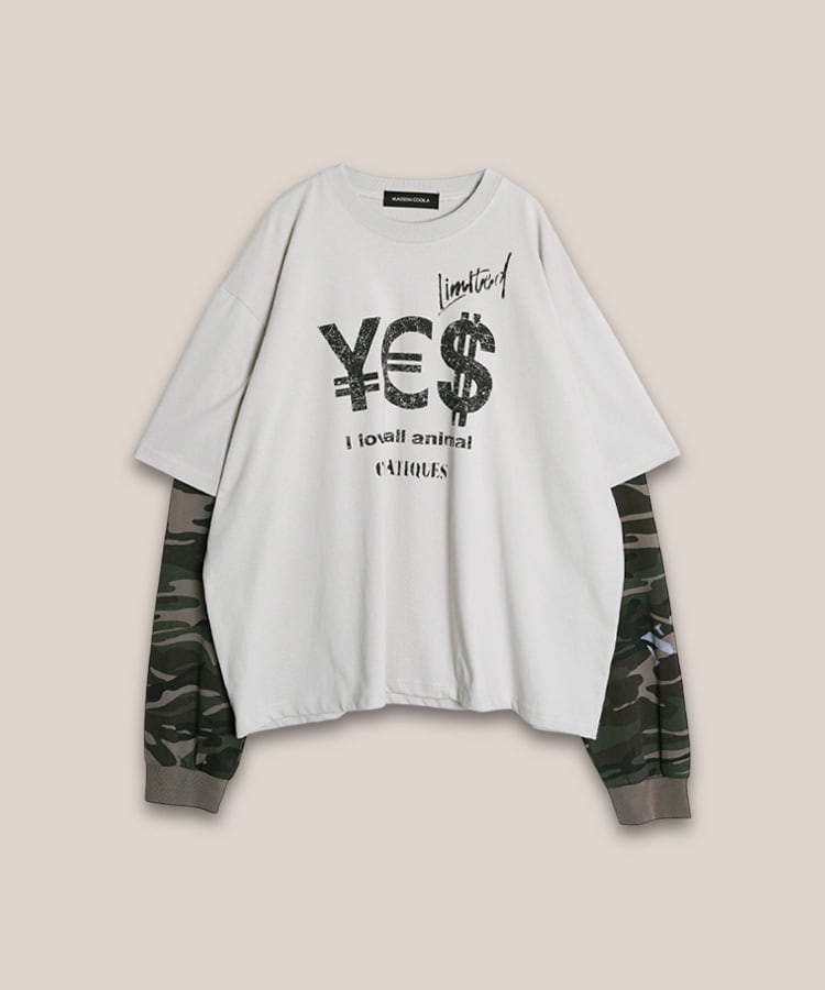 カモフラレイヤードロングスリーブTシャツ (L/GRAY) CQ-47073H