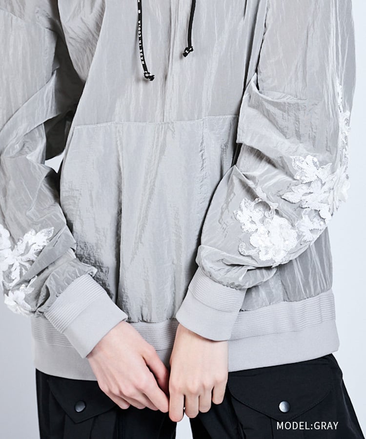 スパンコールスリーブナイロンフーディー (GRAY) CQ-47039