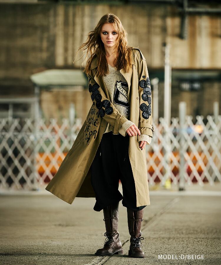 パッチ&ペイントロングトレンチコート (D/BEIGE) CQ-47041