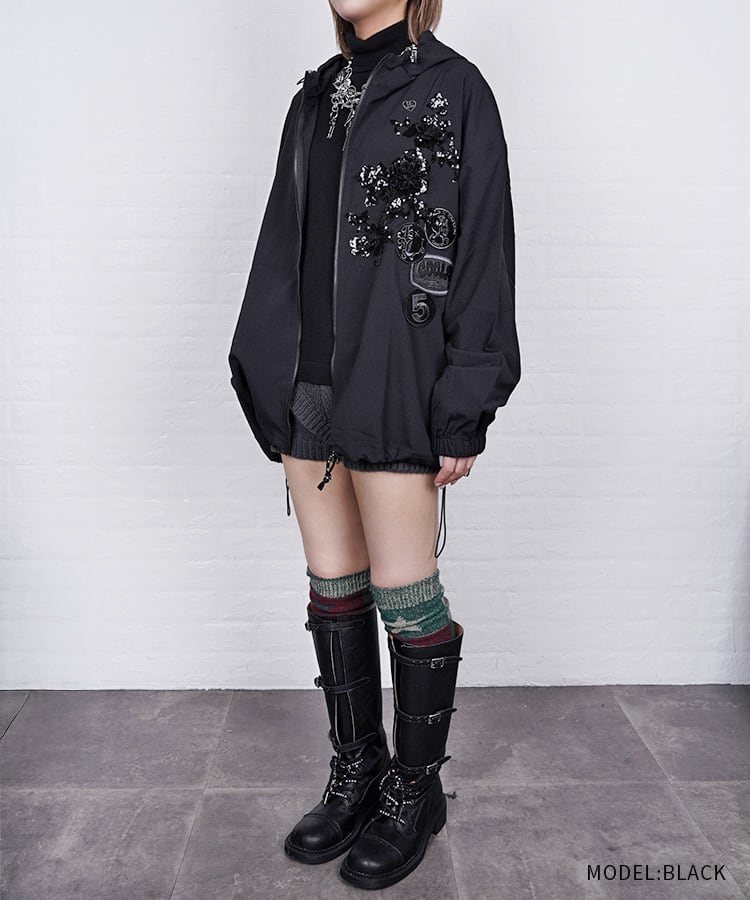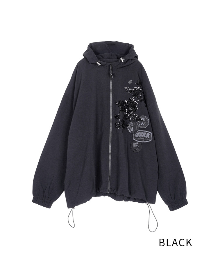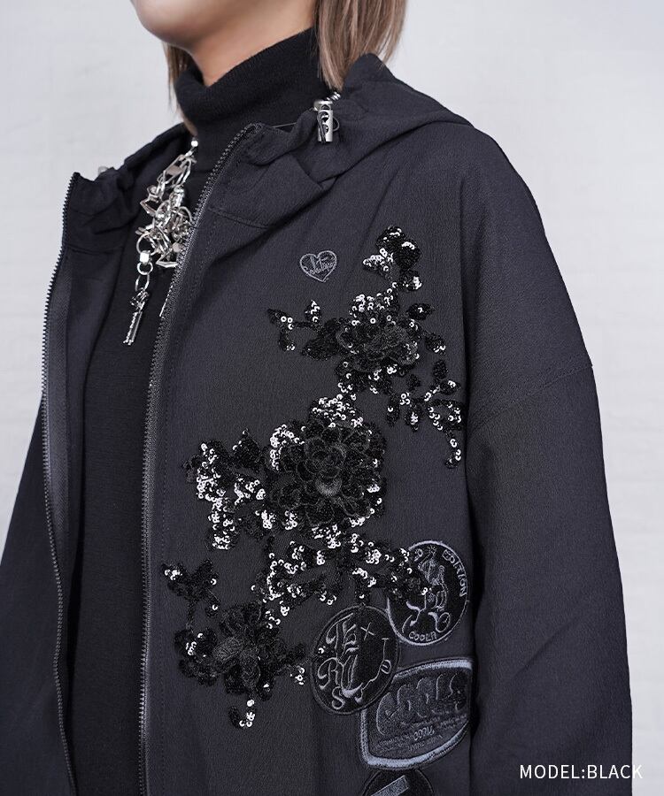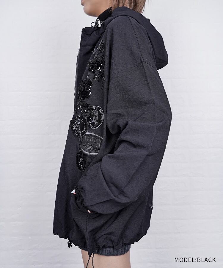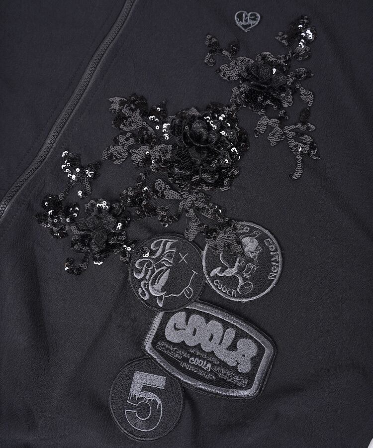 【直営店限定ITEM】レース×パッチルーズジップフーディー (BLACK) CQ-47125H