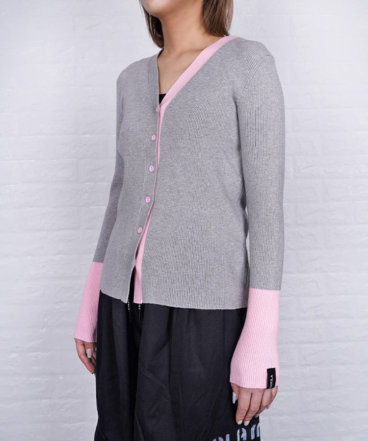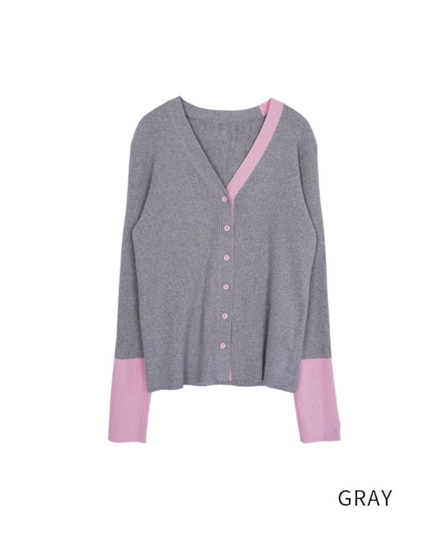 【直営店限定ITEM】バイカラーVネックニットカーディガン (GRAY) CQ-47122H