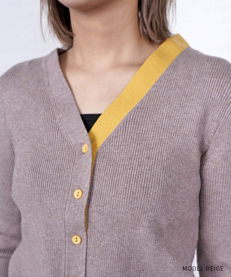 【直営店限定ITEM】バイカラーVネックニットカーディガン (BEIGE) CQ-47122H