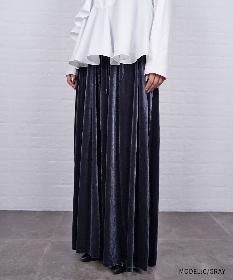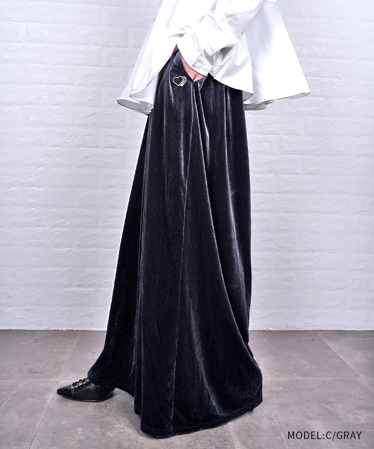 【直営限定ITEM】ベロアフレアワイドパンツ (C/GRAY) CQ-47127H