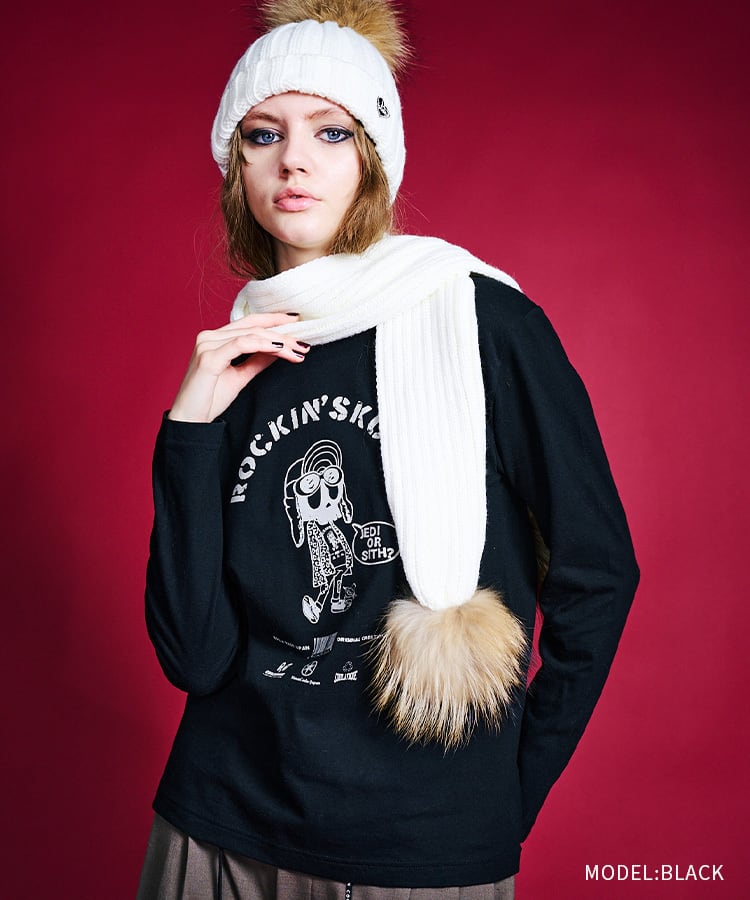 ロッキンスカルプリントL/SベーシックTシャツ (BLACK) CQ-47079