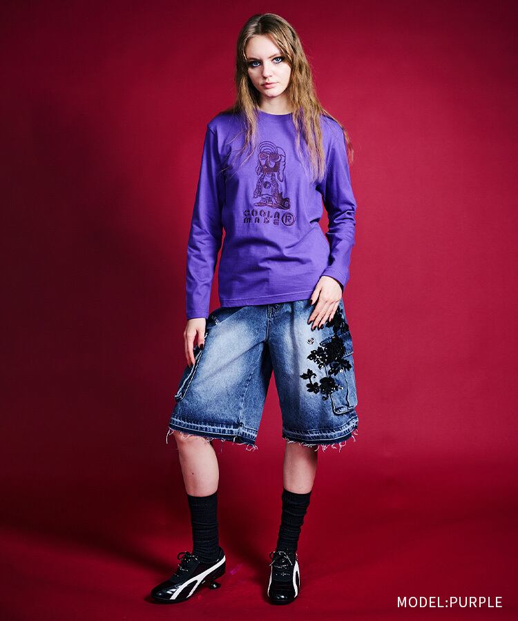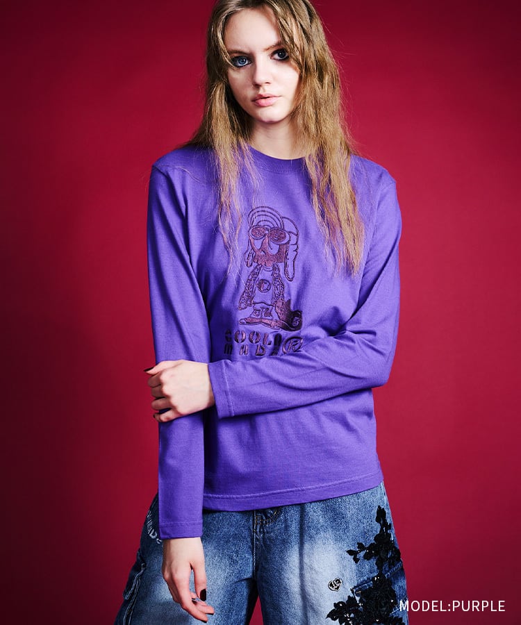 ロッキンスカルエンブロイダリーL/SベーシックTシャツ (PURPLE) CQ-47080