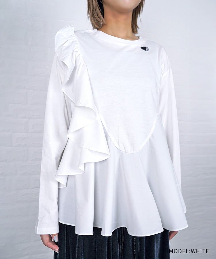 【直営限定ITEM】フリルドッキングフレア L/S Tシャツ (WHITE) CQ-47124H