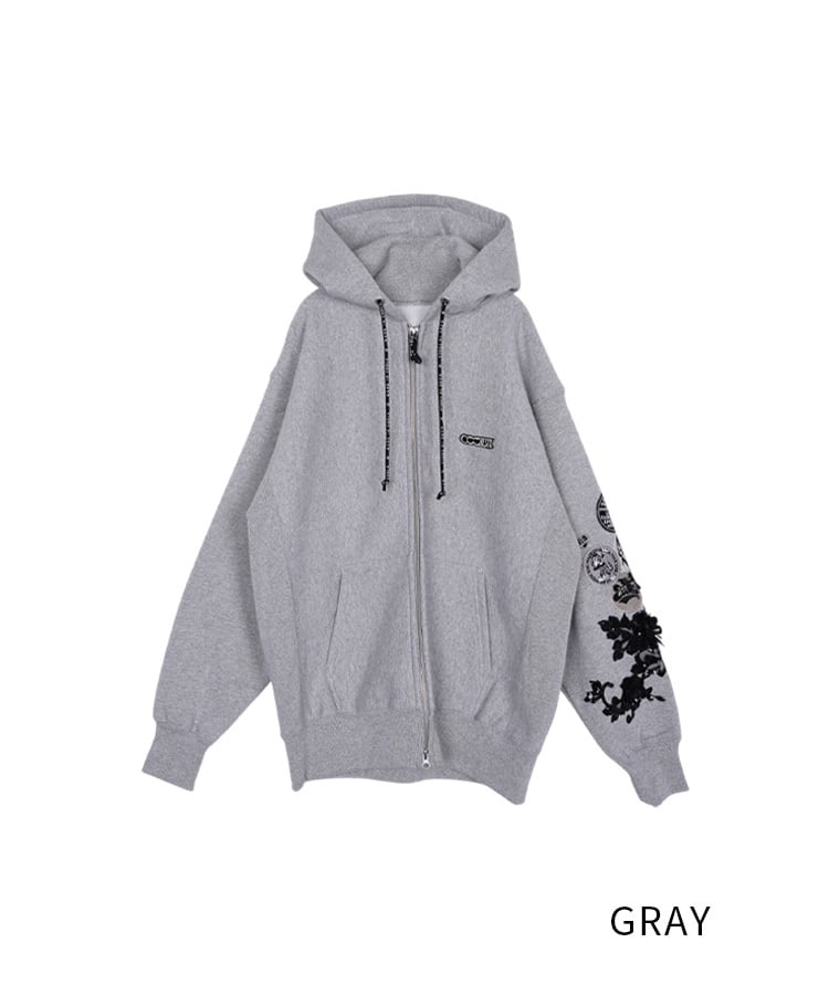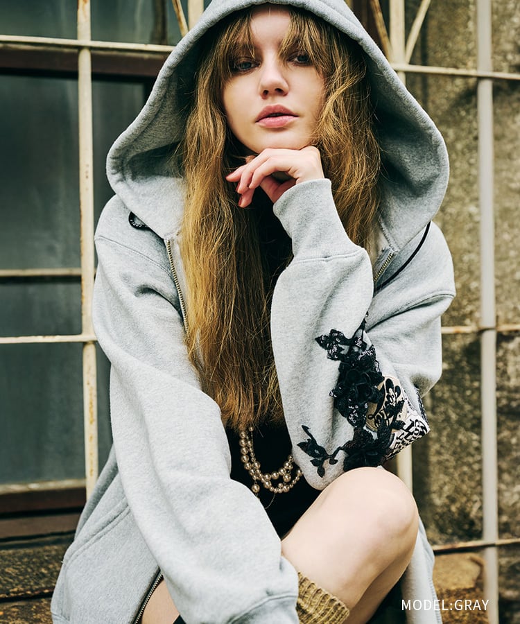 ギャザーロゴレースジップフーディー (GRAY) CQ-47085