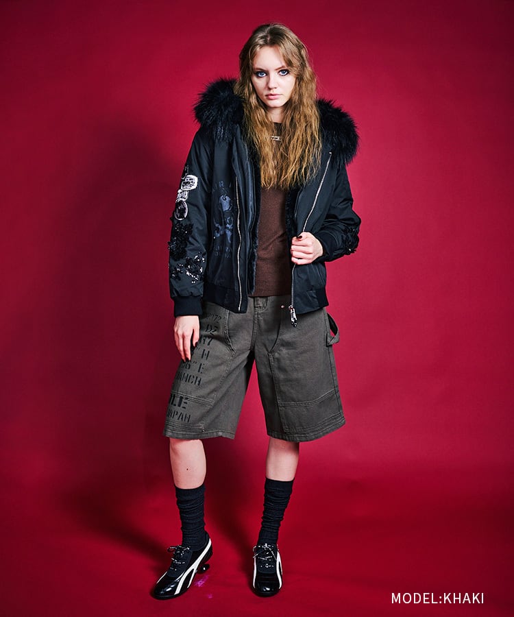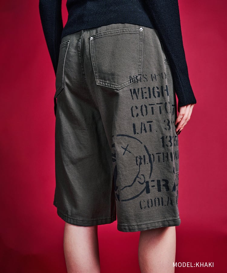 レタリングコットンハーフパンツ (KHAKI) CQ-47090