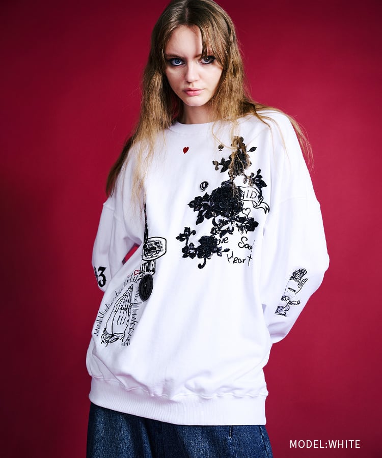 マルチエンブロイダリースパンコールスウェットシャツ (WHITE) CQ-47094
