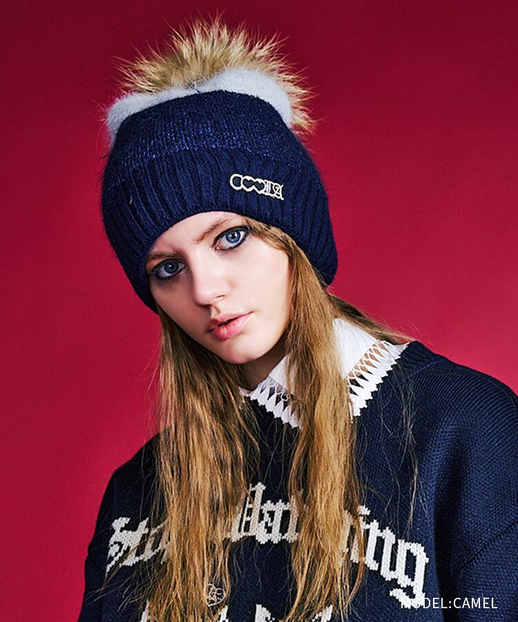 スイッチングポンポンニットビーニー (CAMEL) CQ-47534