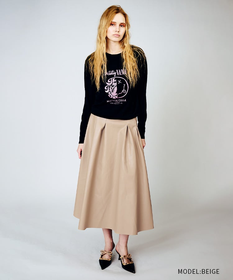 【直営限定ITEM】エコレザーフレアスカート (BEIGE) CQ-47133H