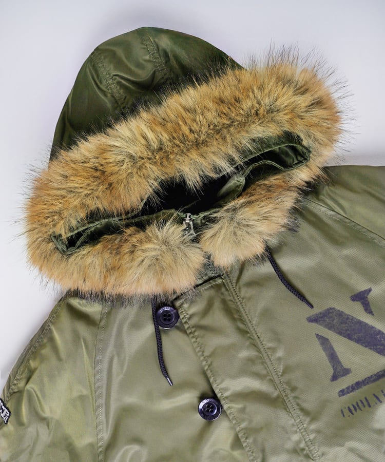 フード部分のファーは取り外しが可能で