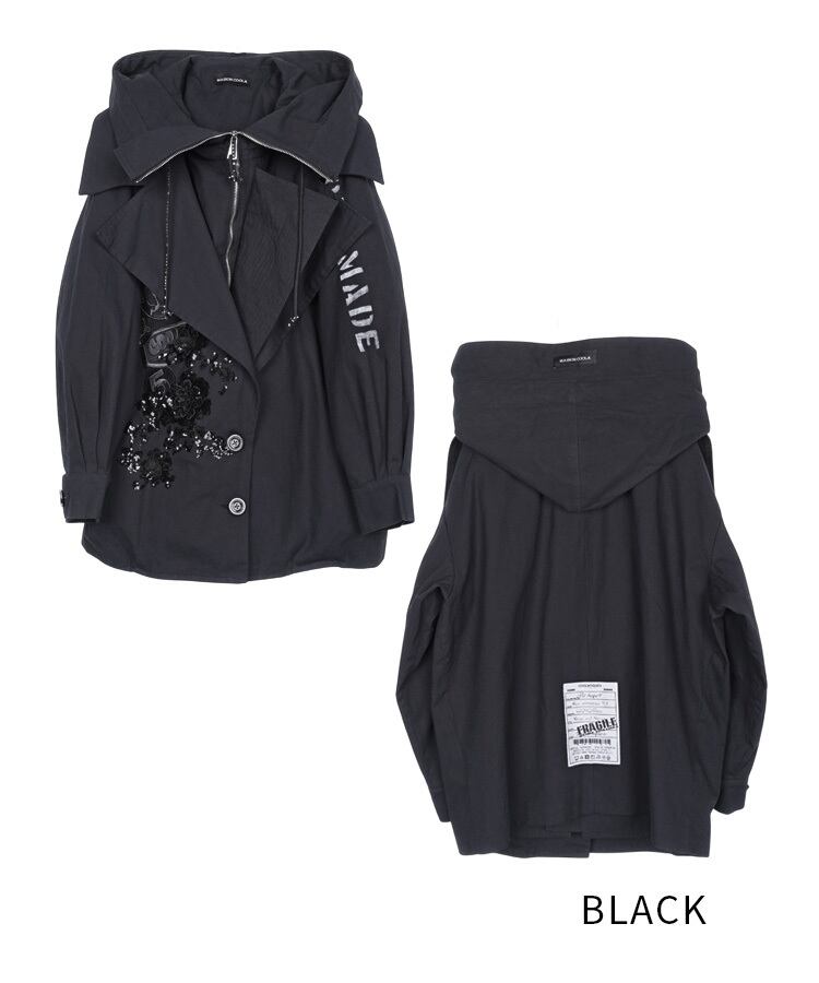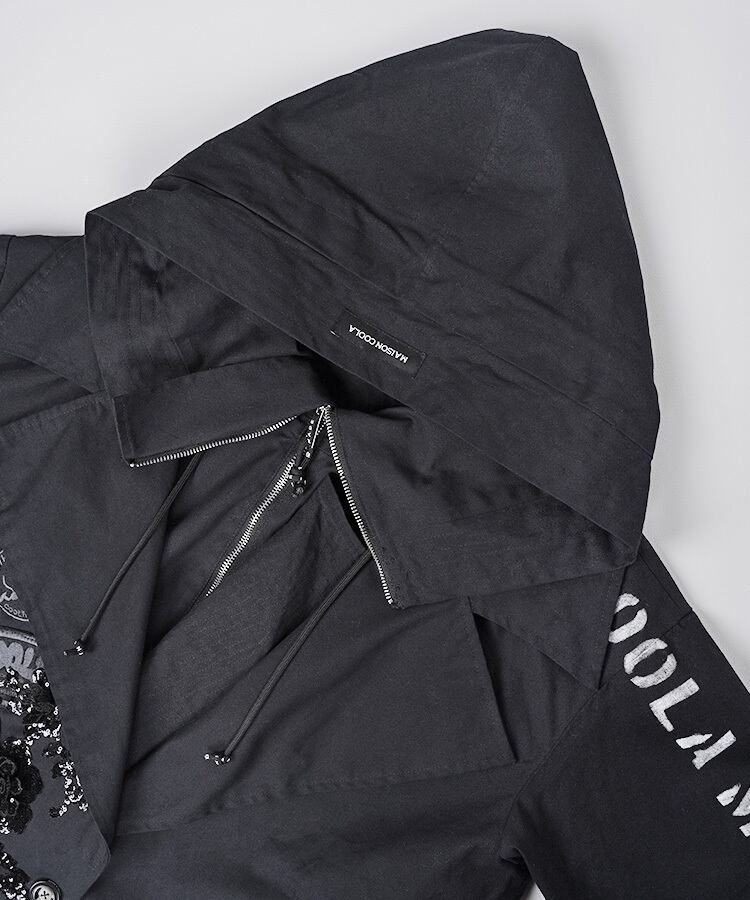 大きなカラーフードが特徴的で