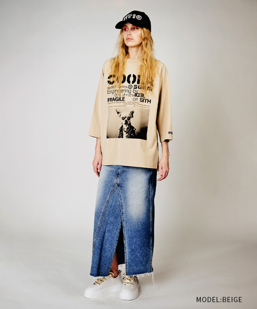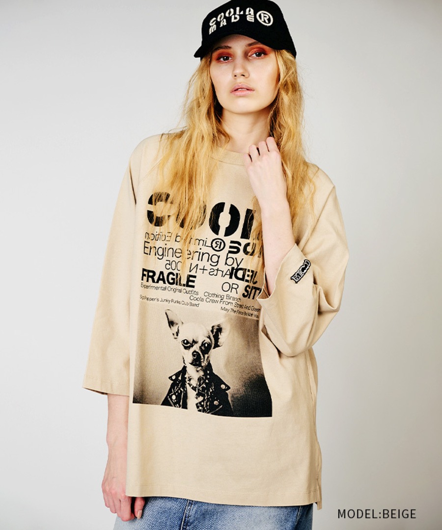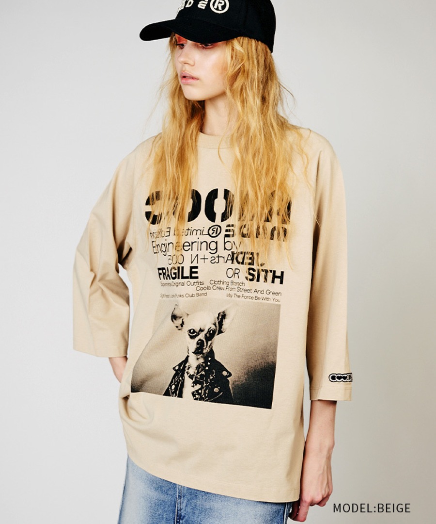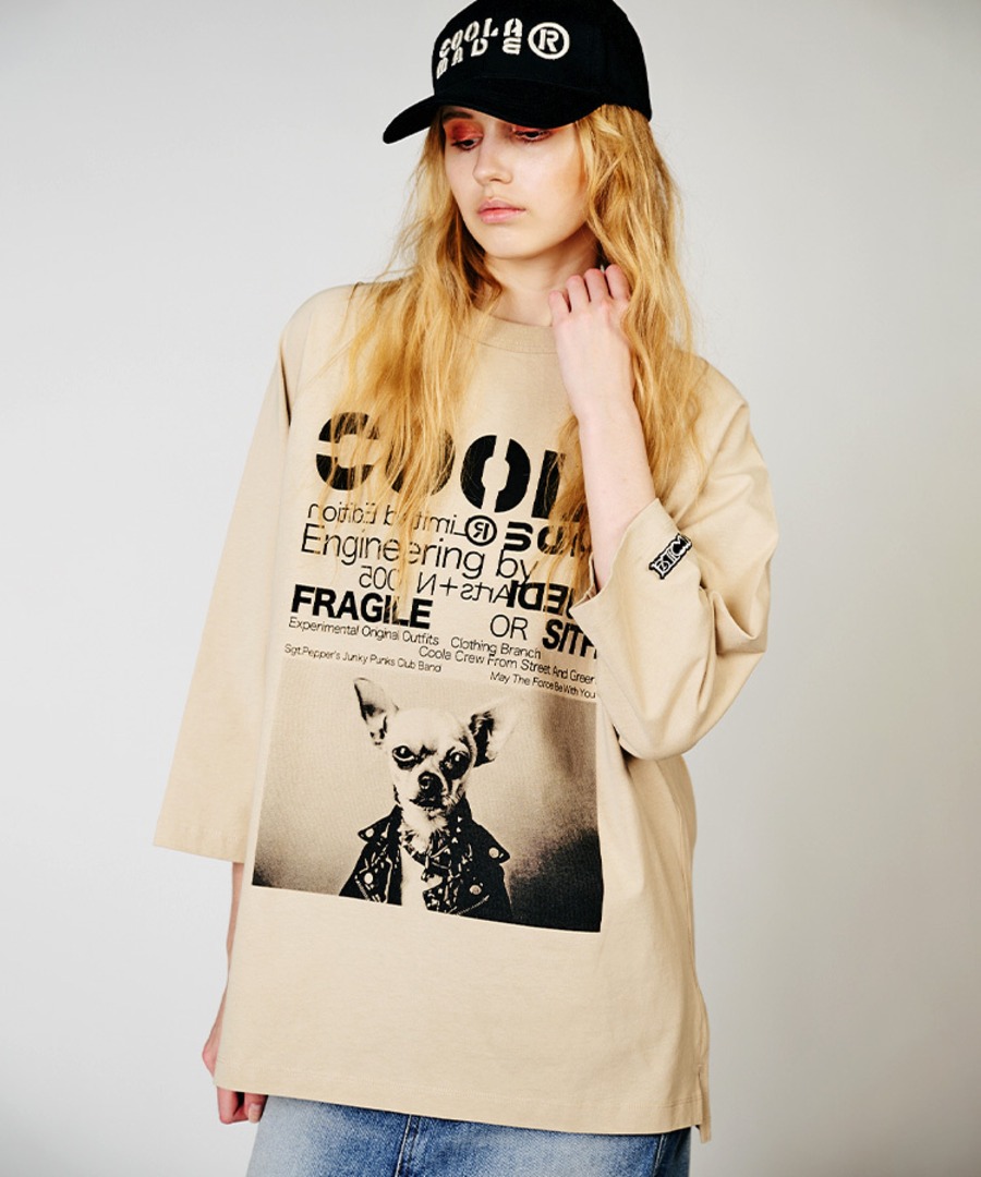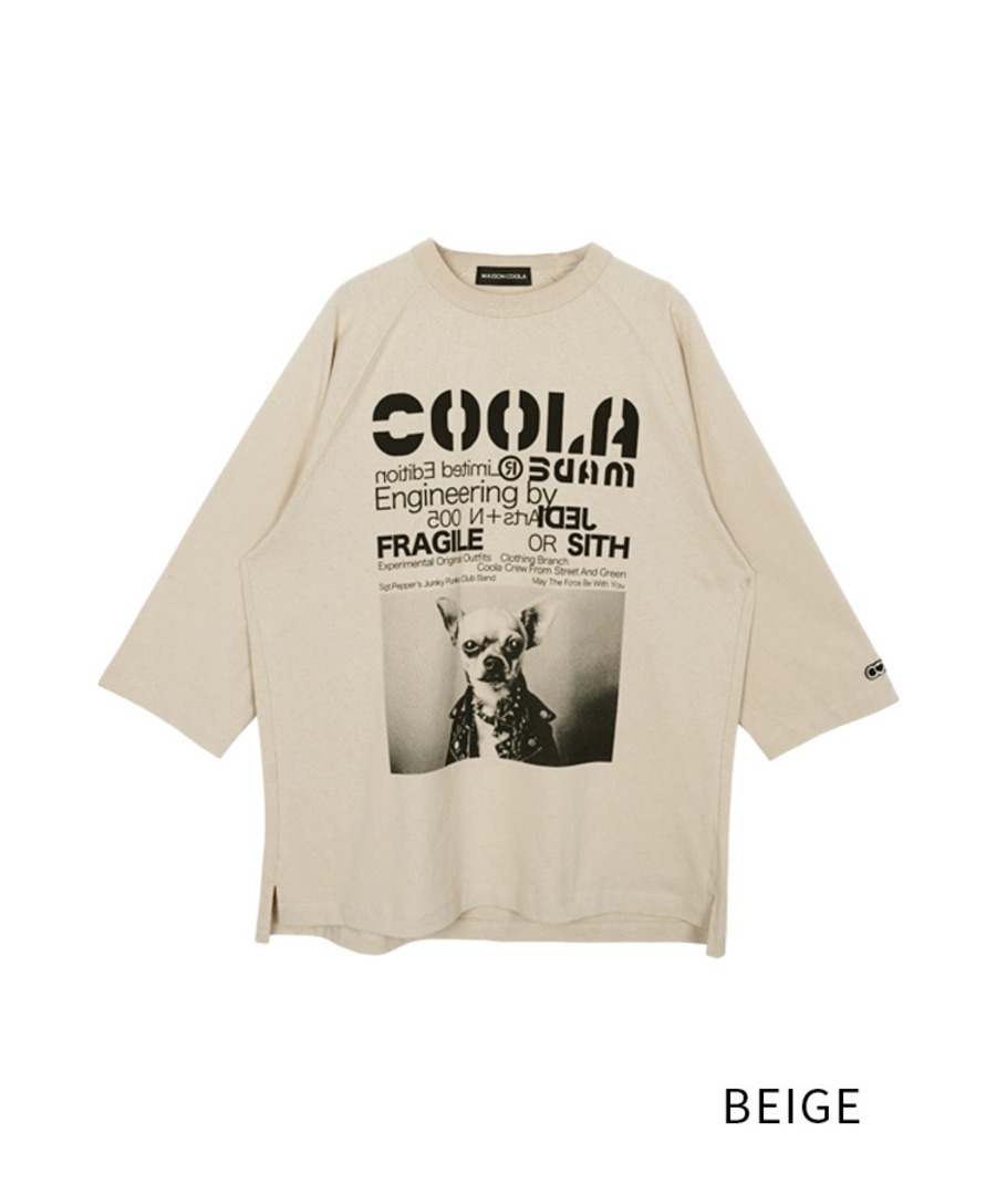【先行販売】COOLA DOGGYフォトプリントラグランスリーブTシャツ (BEIGE) CQ-48024