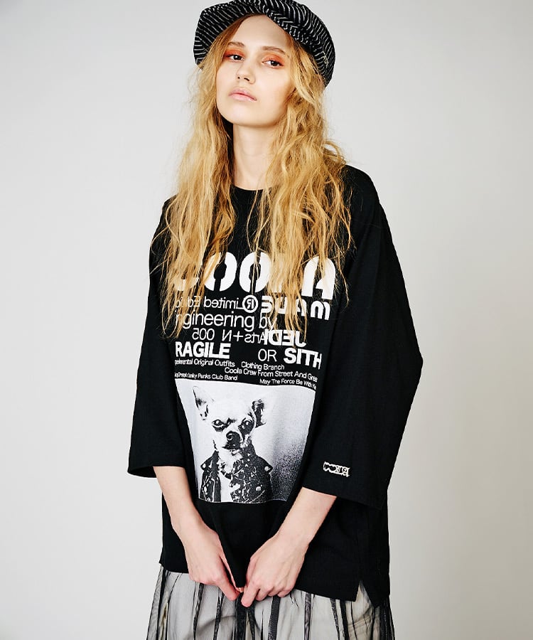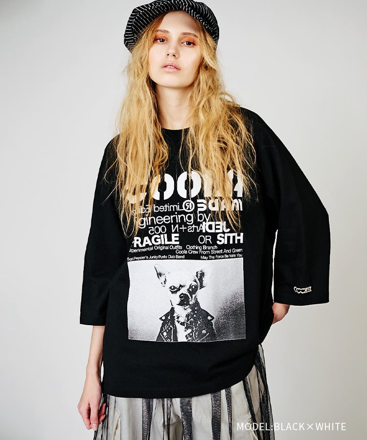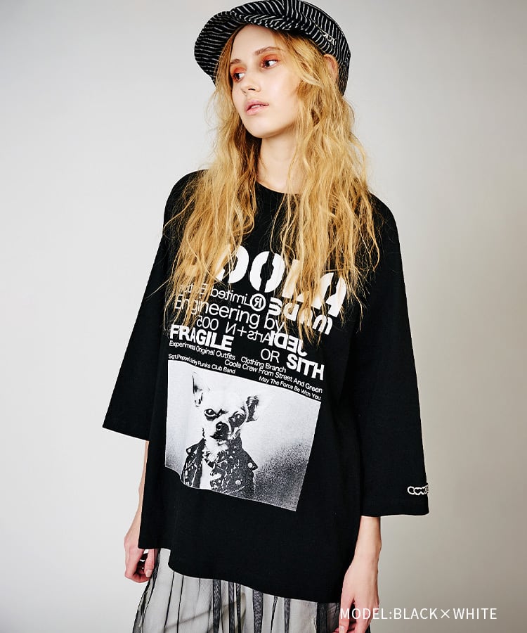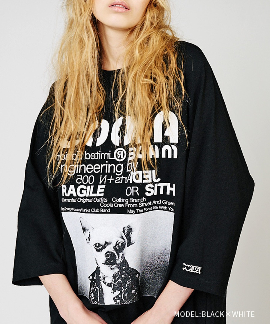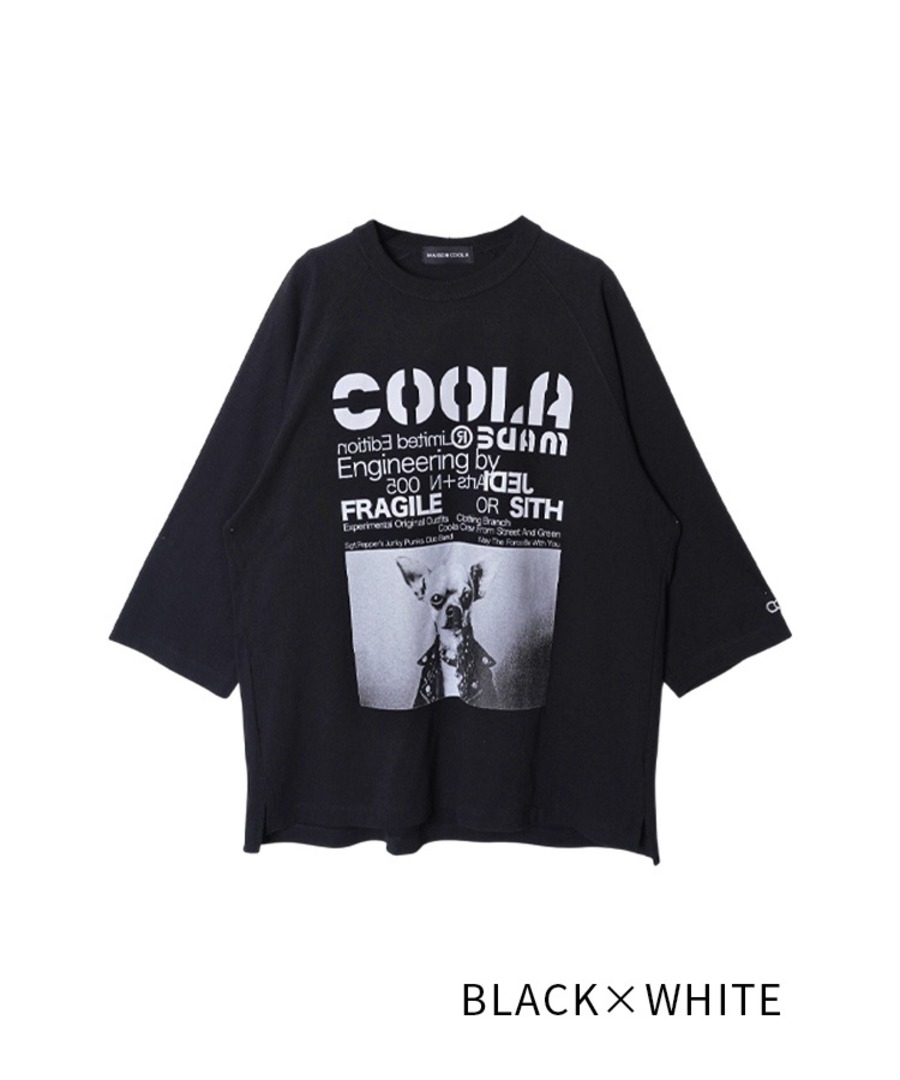 【先行販売】COOLA DOGGYフォトプリントラグランスリーブTシャツ (BLACK×WHITE) CQ-48024