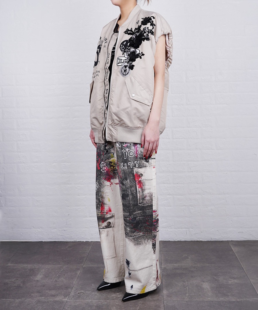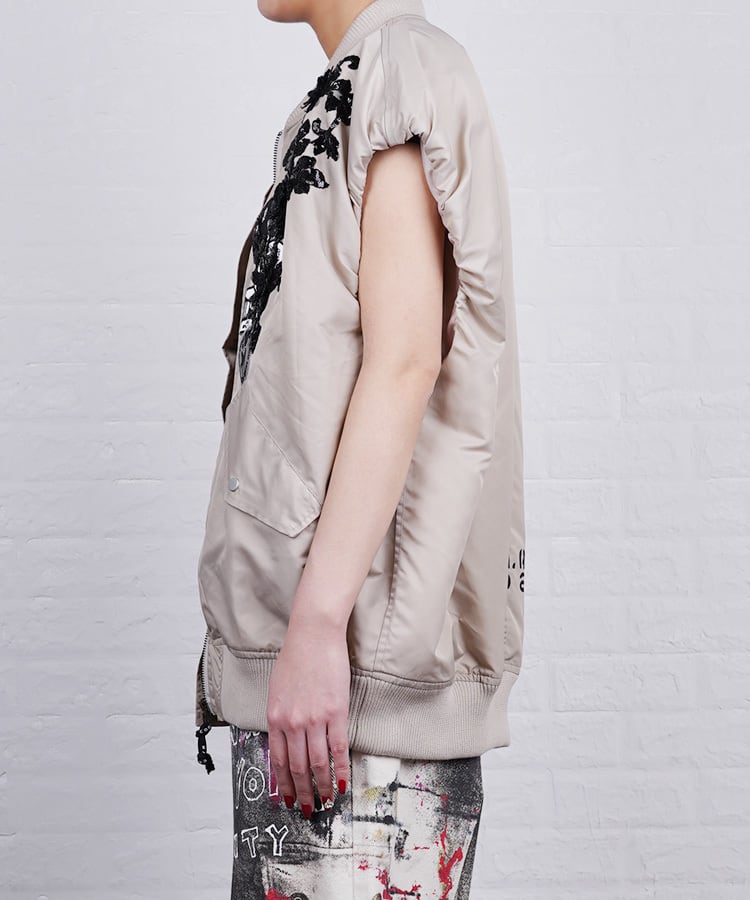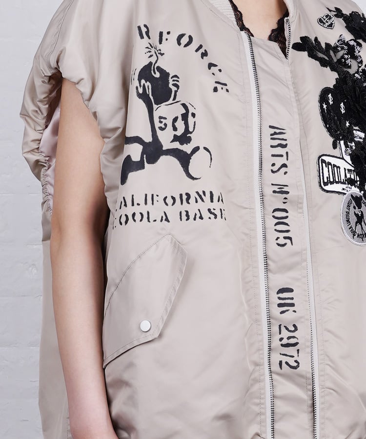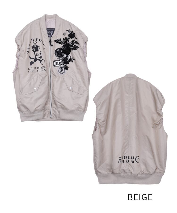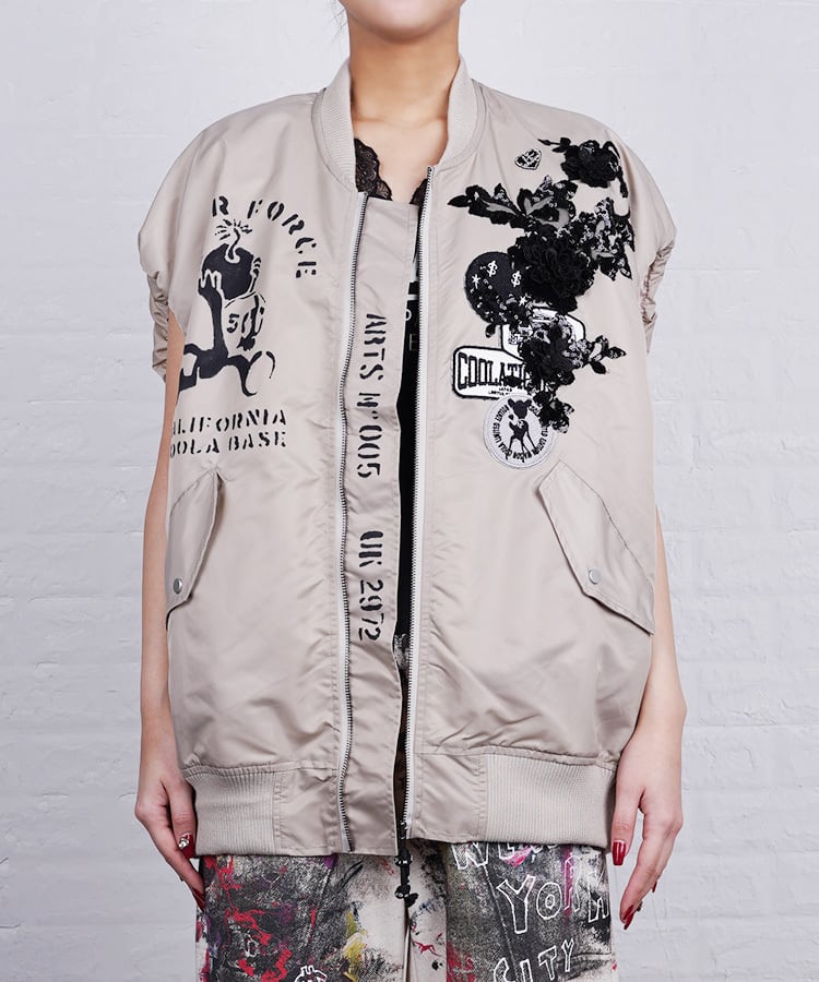 【ATELIER LINE】COOLAペイント×レースオープンジップベスト (BEIGE) CQ-48064H