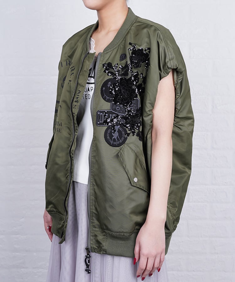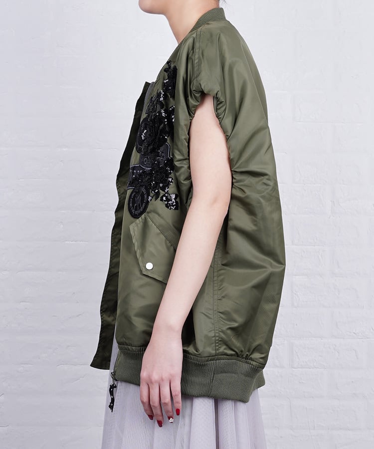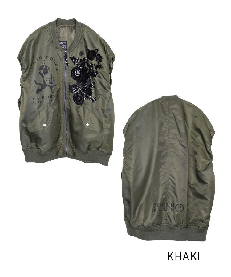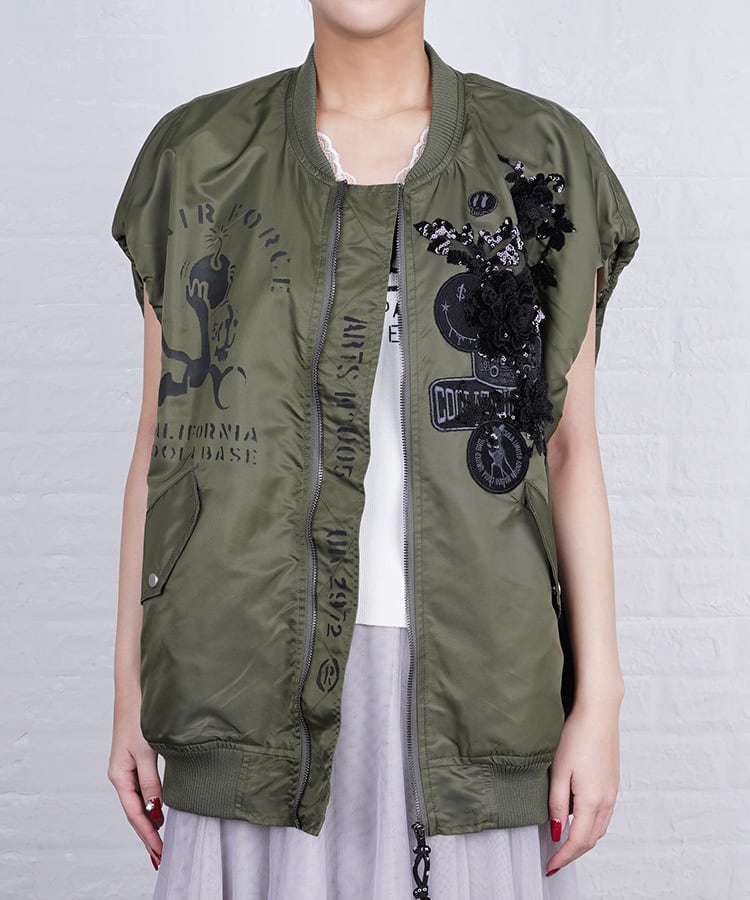 【ATELIER LINE】COOLAペイント×レースオープンジップベスト (KHAKI) CQ-48064H