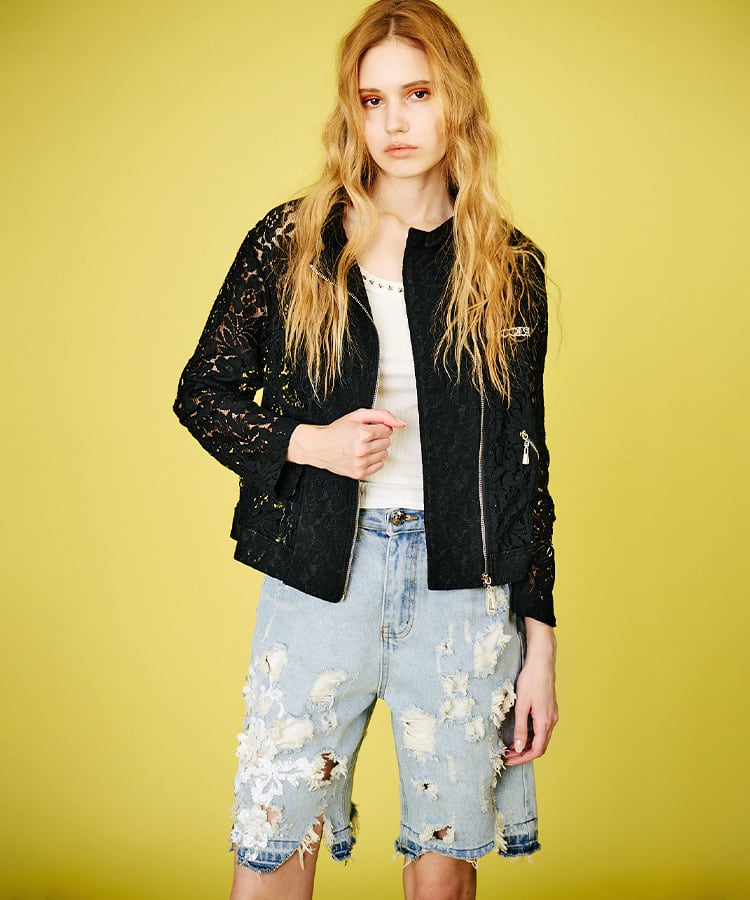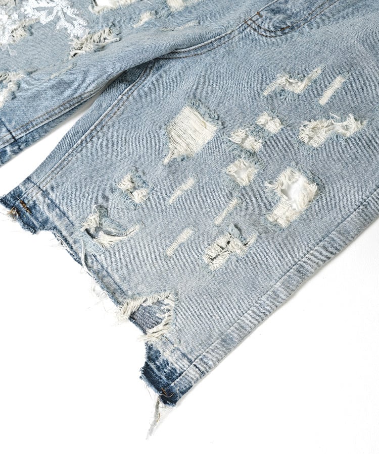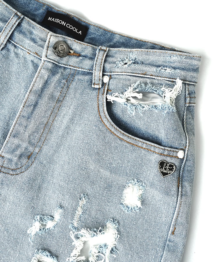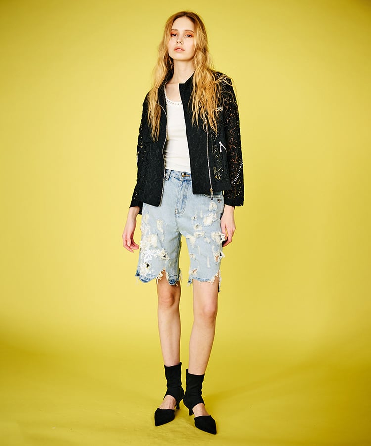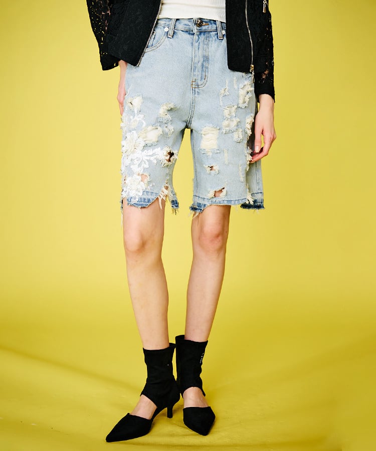 レース&ダメージデニムハーフパンツ CQ-48008