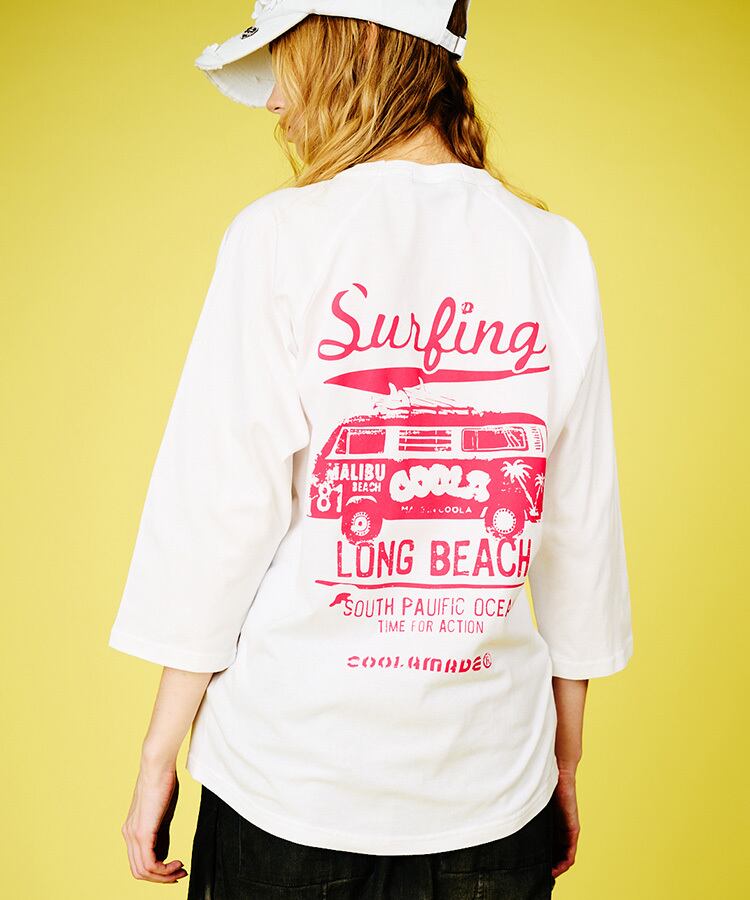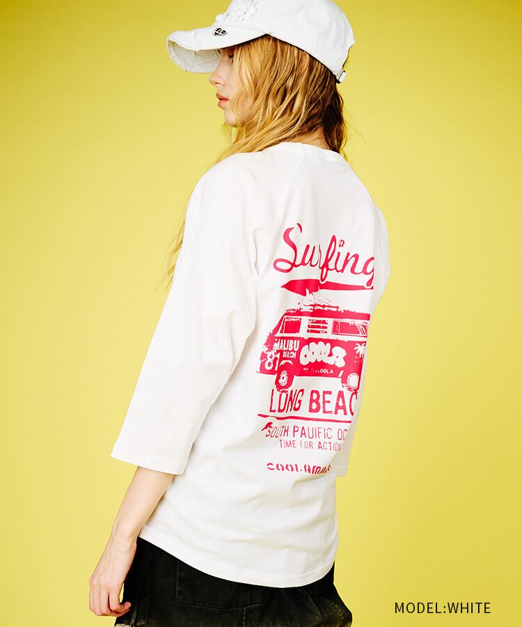 COOLAバスプリントラグランスリーブTシャツ (WHITE) CQ-48025