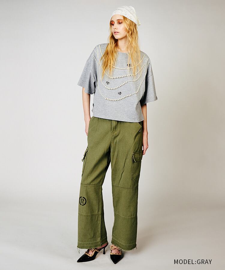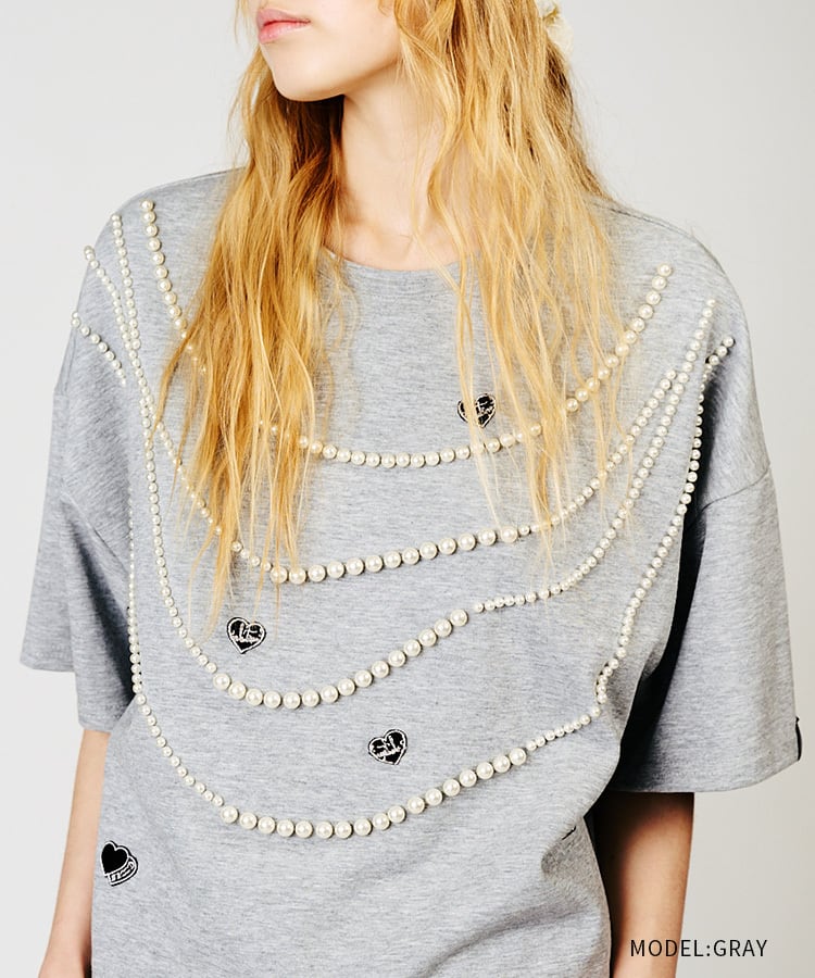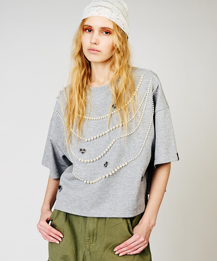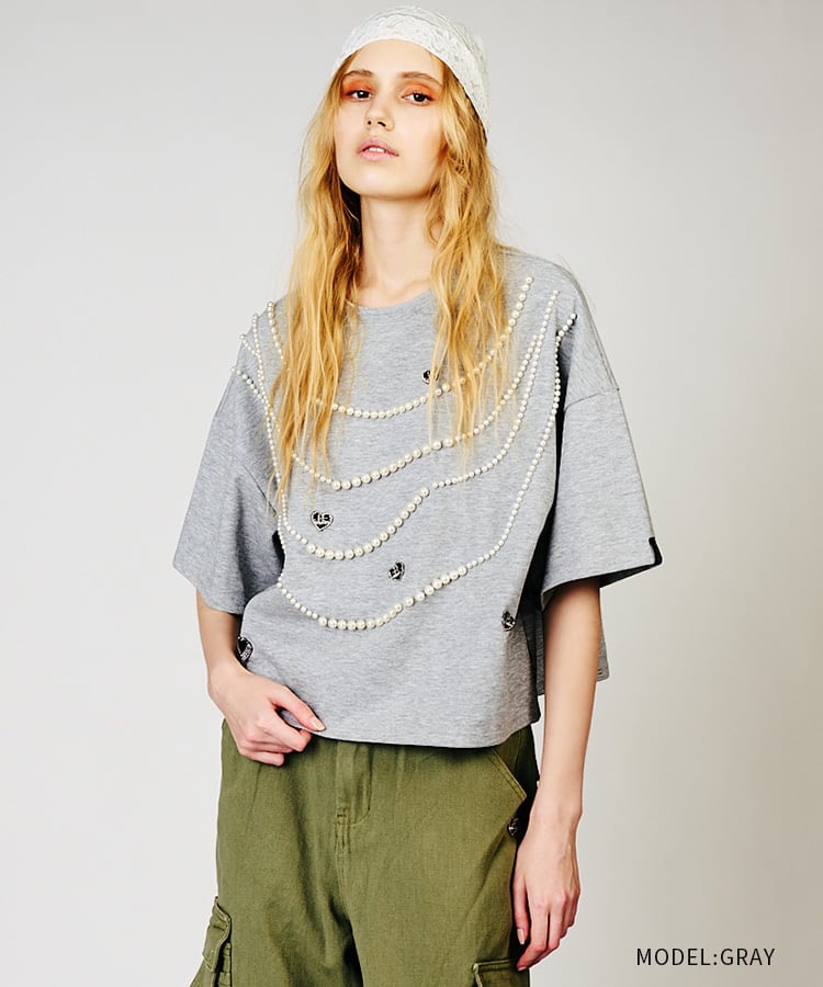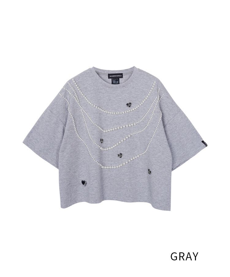 【先行販売】ハートロゴビジューTシャツ (GRAY) CQ-48022