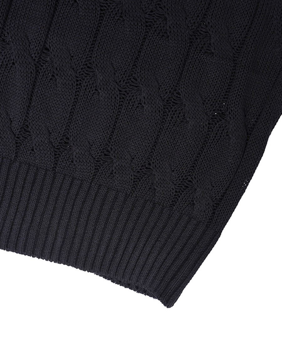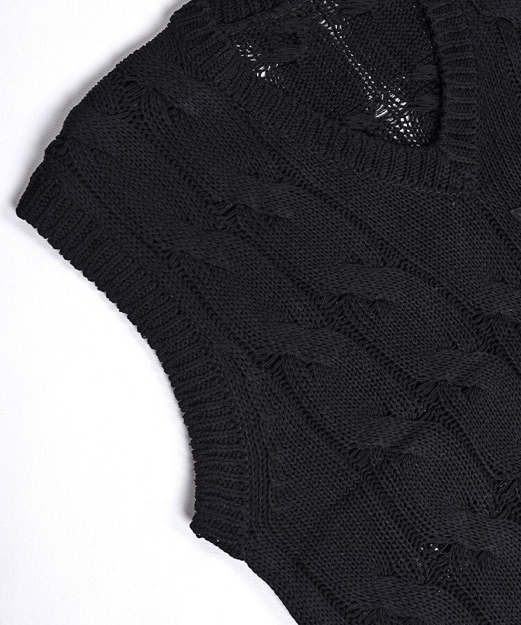 ワイドケーブル編みが透け感を持たせ、