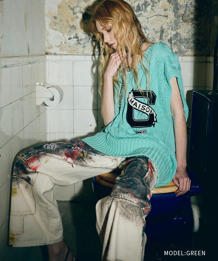 ざっくりと編むことで透け感があり、