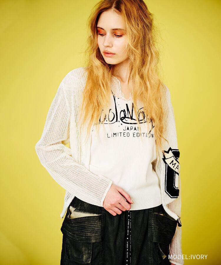 フラッグエンブレムレースニッティングブルゾン (IVORY) CQ-48020