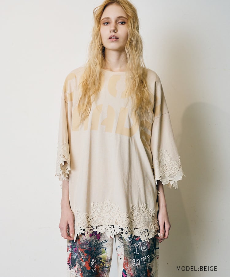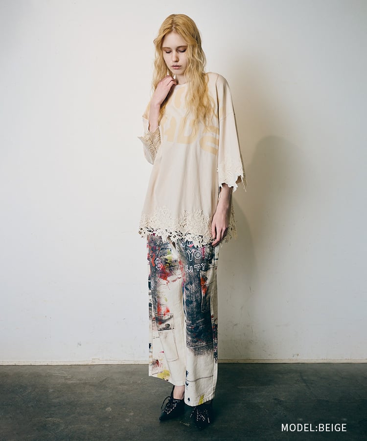 コネクテッドレースルーズTシャツ (BLACK) CQ-48023