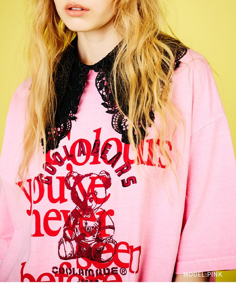COOLAベアーエンブロイダリールーズTシャツ (PINK) CQ-48032