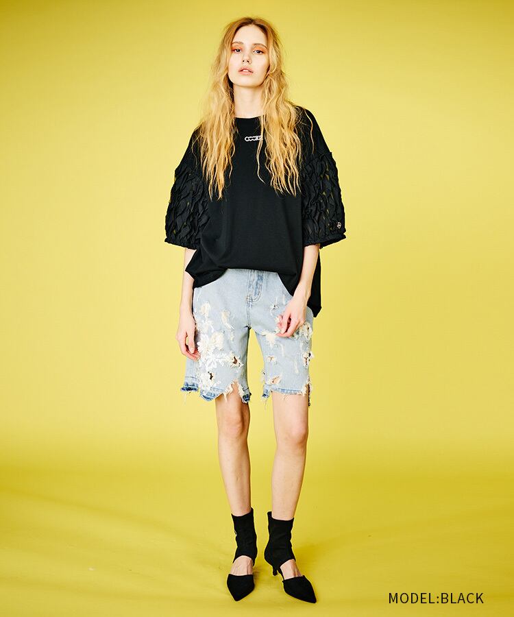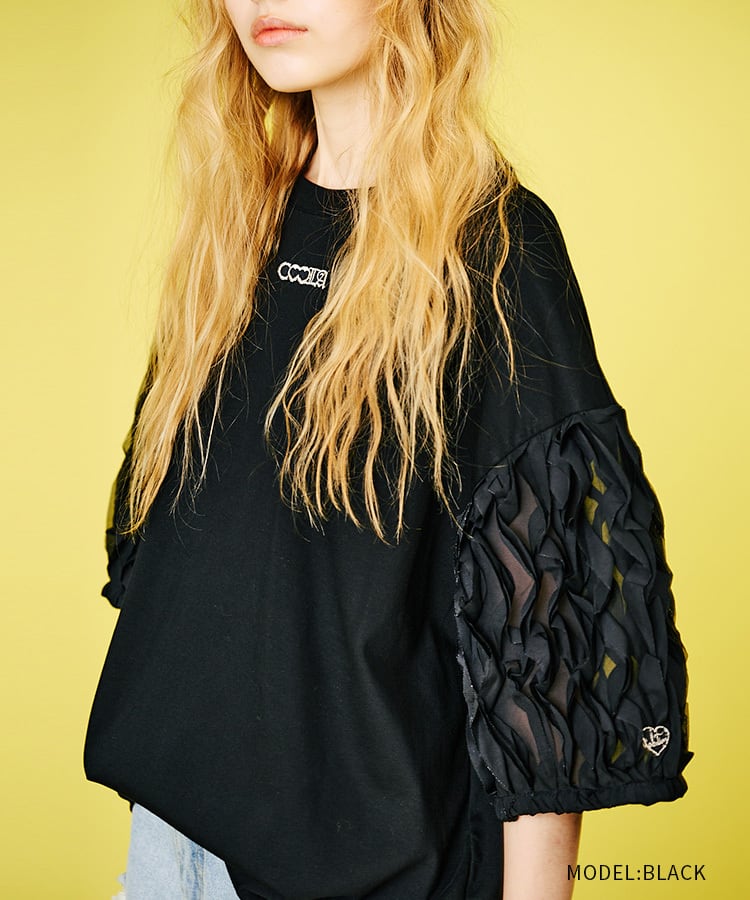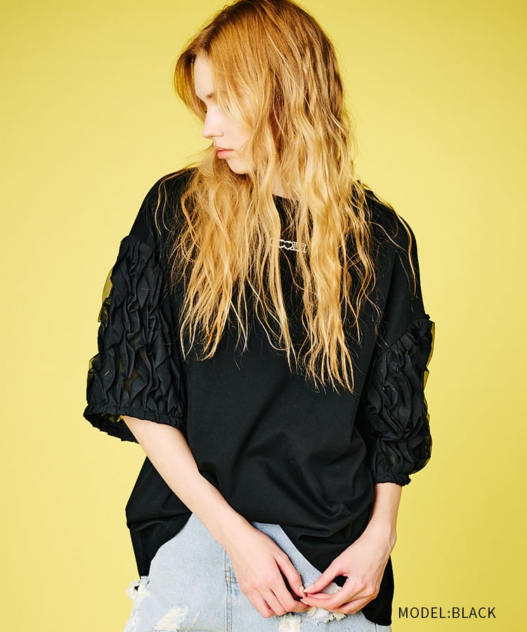 フリルスリーブルーズTシャツ (BLACK) CQ-48031