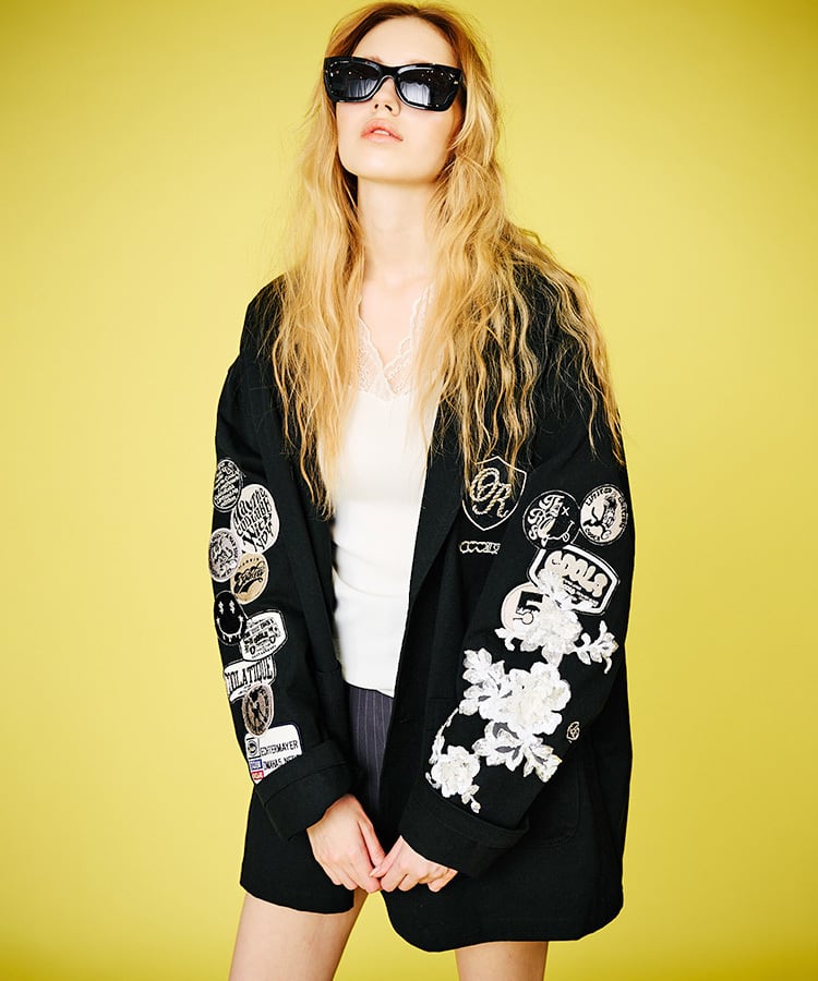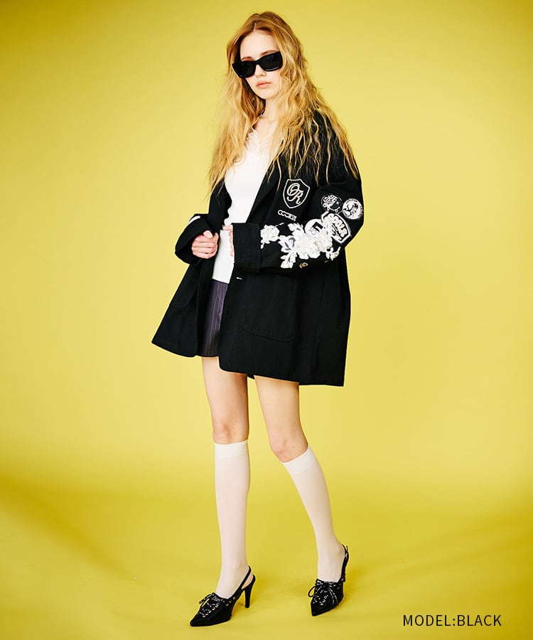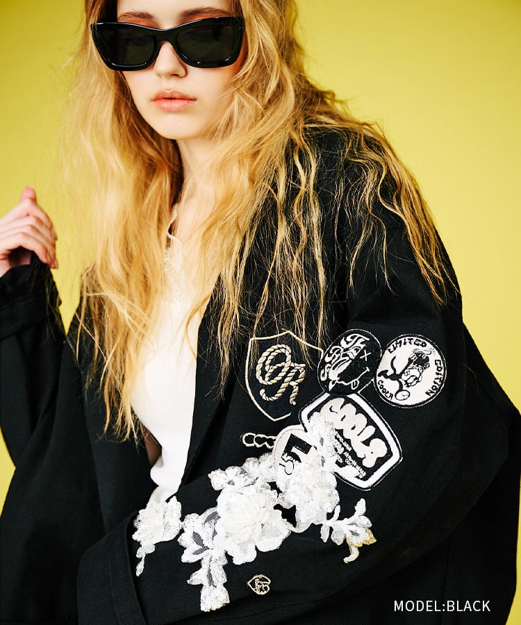 パッチ&レースコットンジャケット (BLACK) CQ-48013