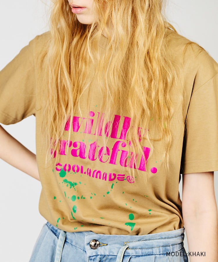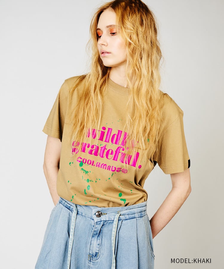 Wildly grateful ロゴプリントベーシックTシャツ (KHAKI) CQ-48041