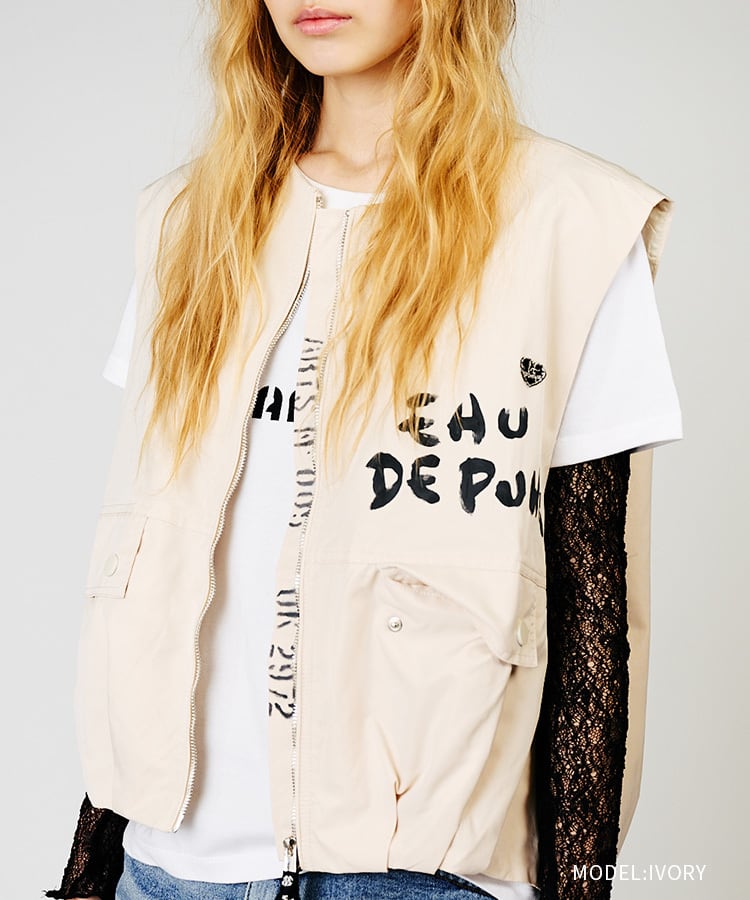 ジップアップペイントカーゴベスト (IVORY) CQ-48027