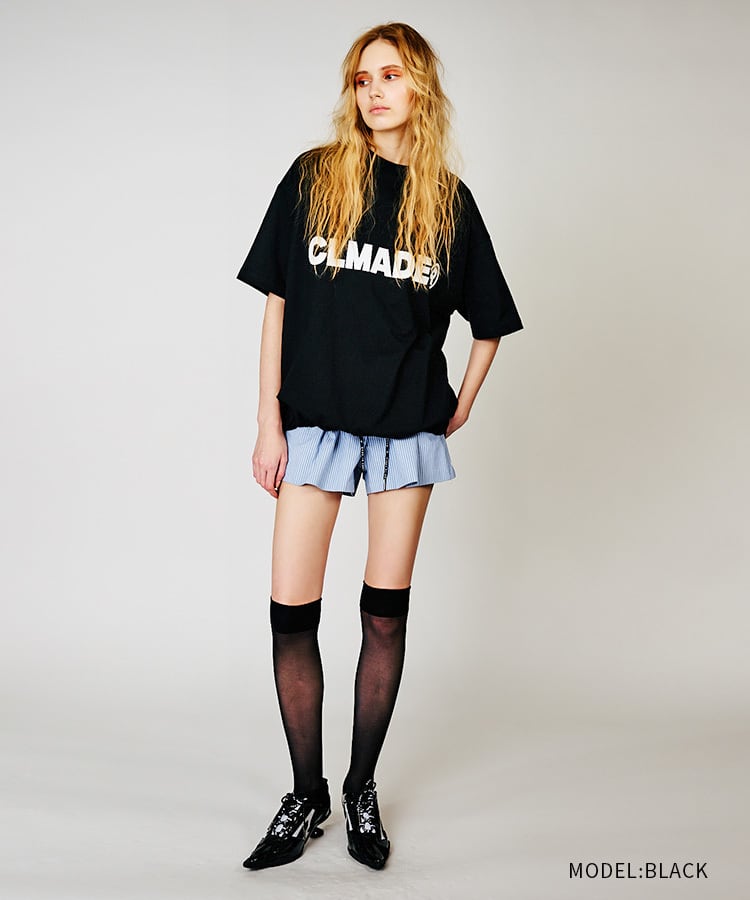 ロゴプリントドローコードルーズTシャツ (BLACK) CQ-48039
