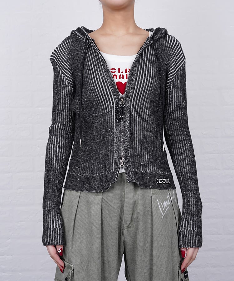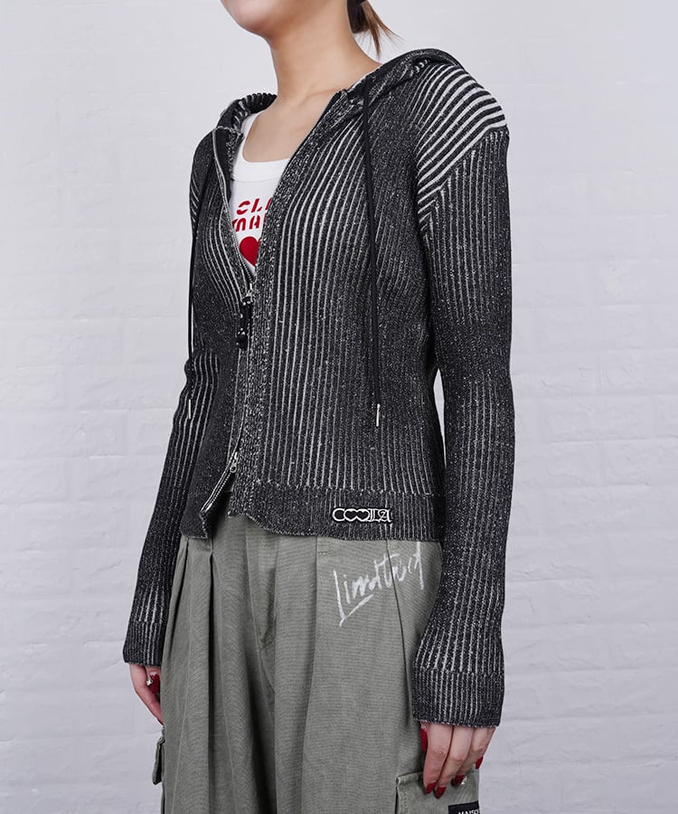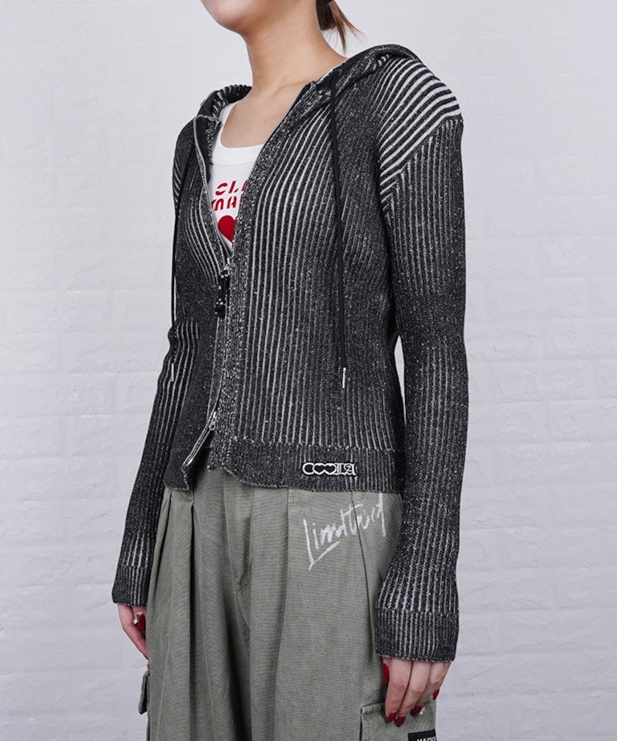 【ATELIER LINE】ヘザーブラックコンパクトニットパーカー (BLACK) CQ-48073H