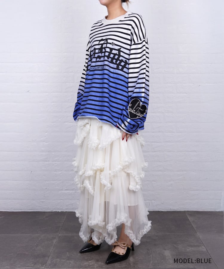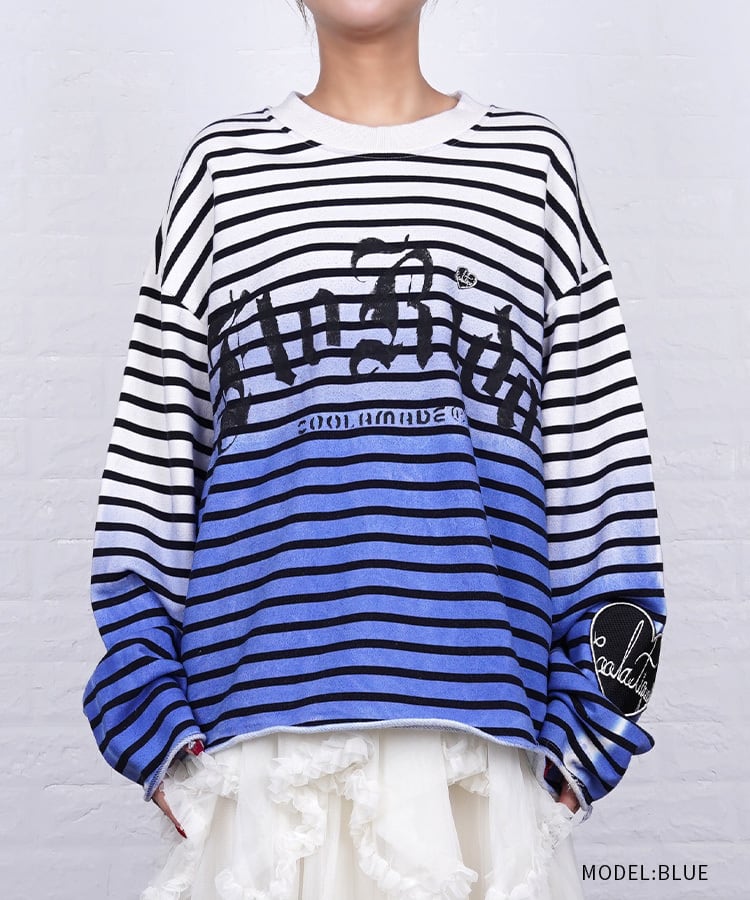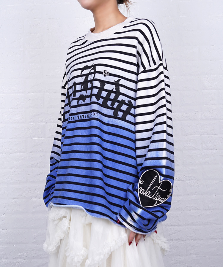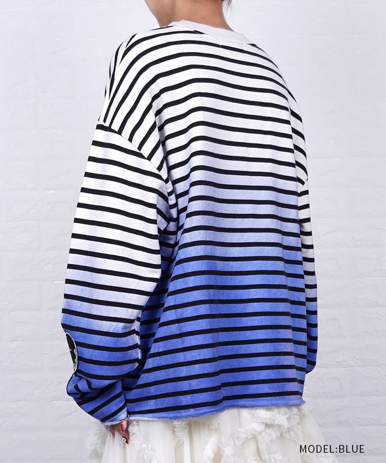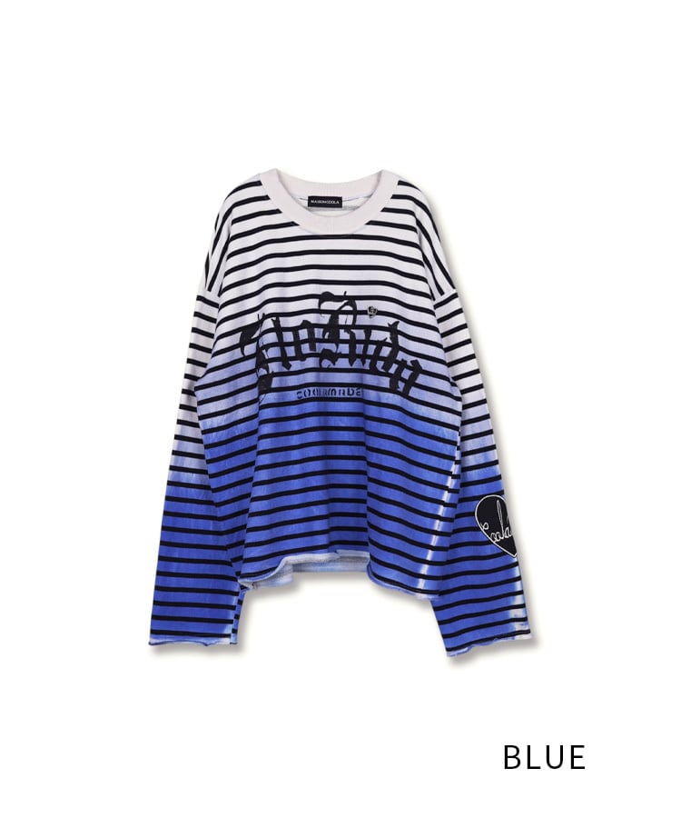 【ATELIER LINE】グラデーションボーダールーズTOPS (BLUE) CQ-48078H