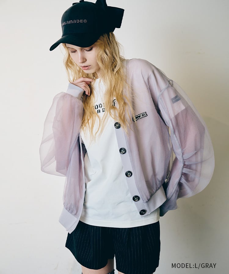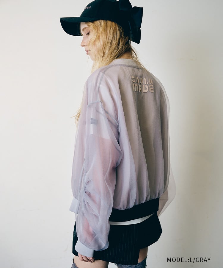 スリーブタックジョーゼットカーディガン (L/GRAY) CQ-47016