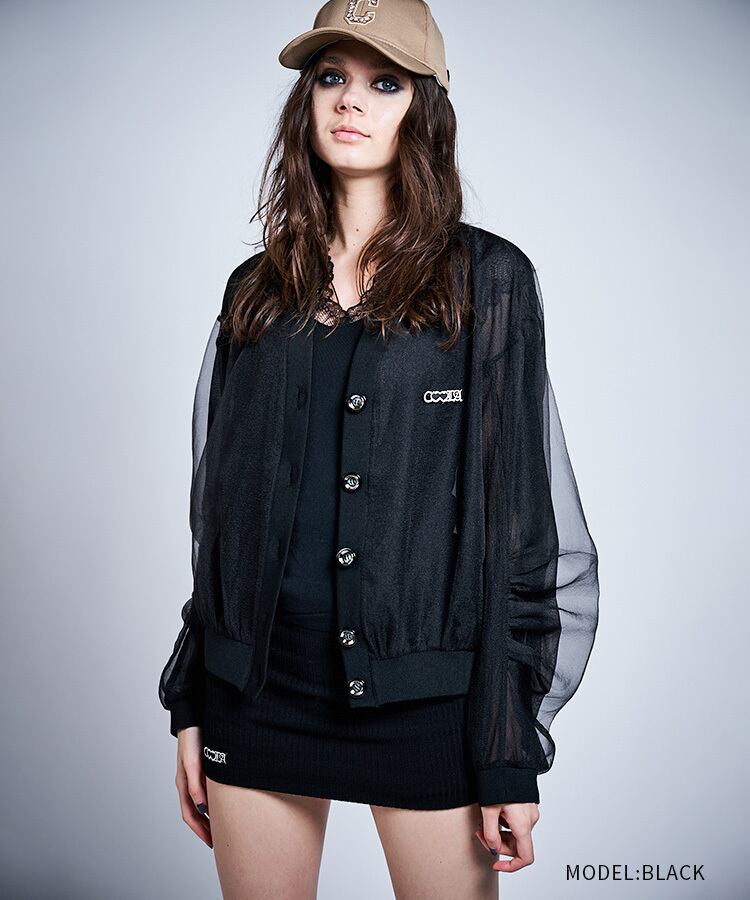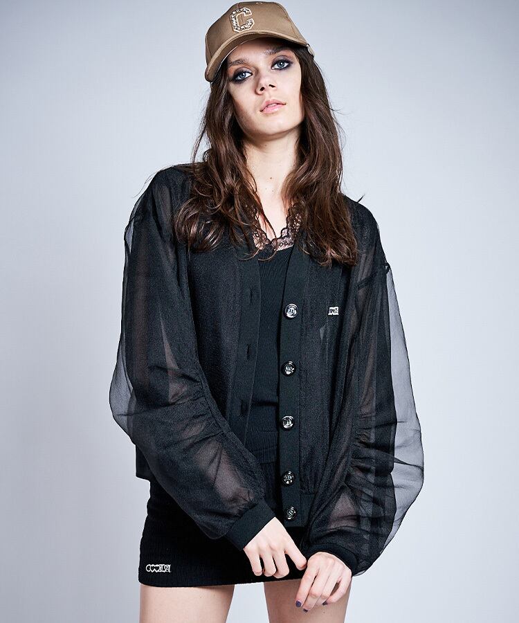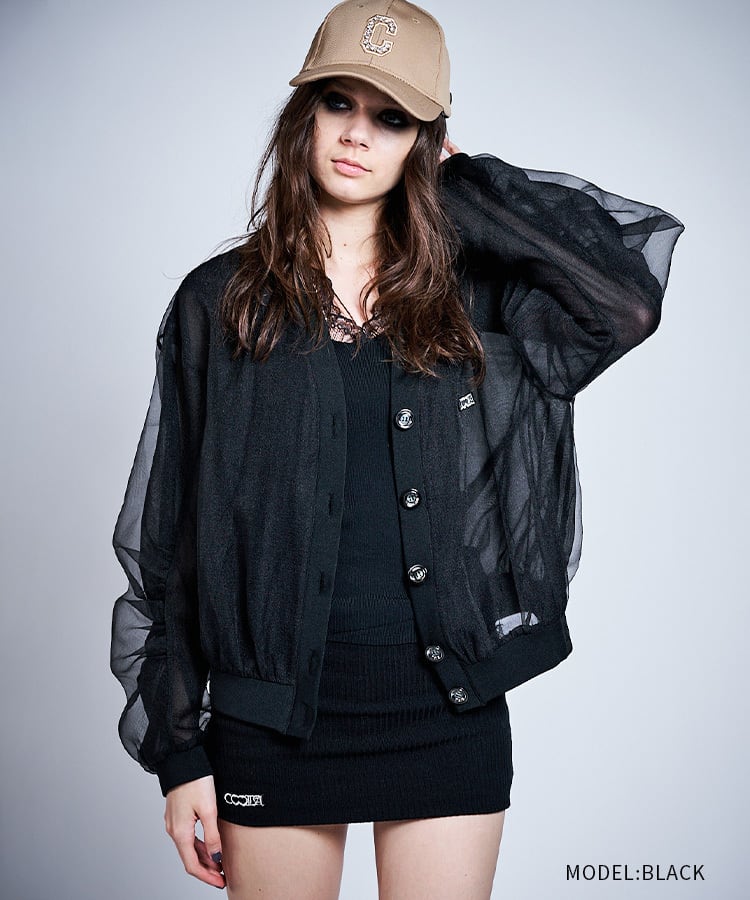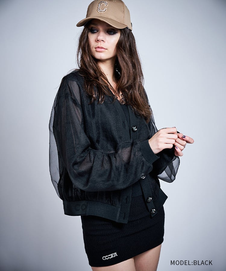 スリーブタックジョーゼットカーディガン (BLACK) CQ-47016