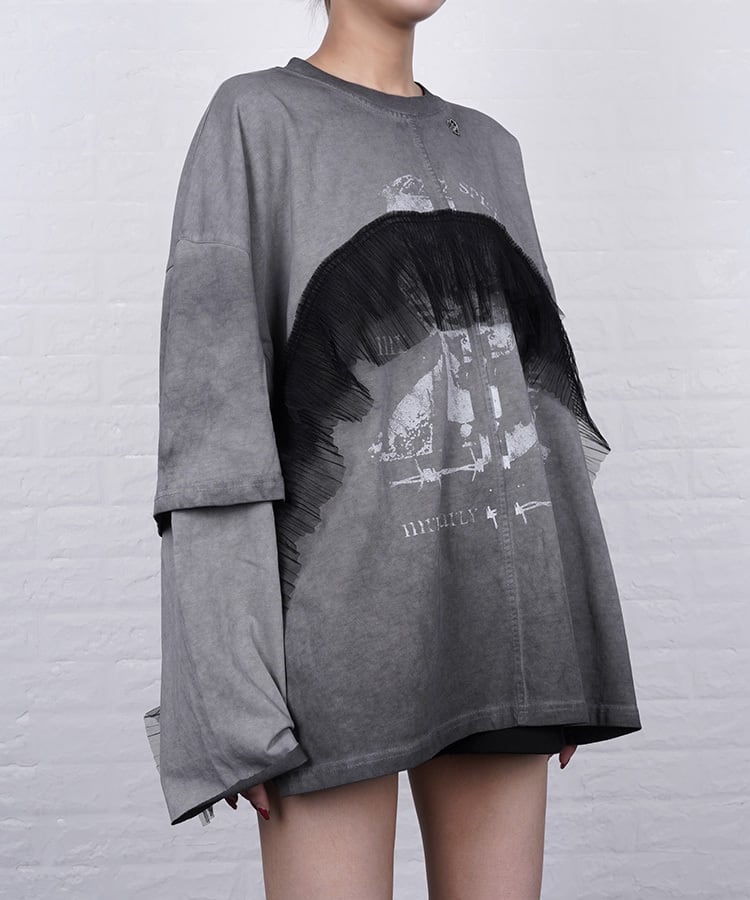 キャッチーなプリント×チュール使いが