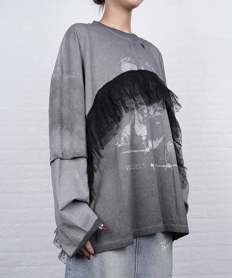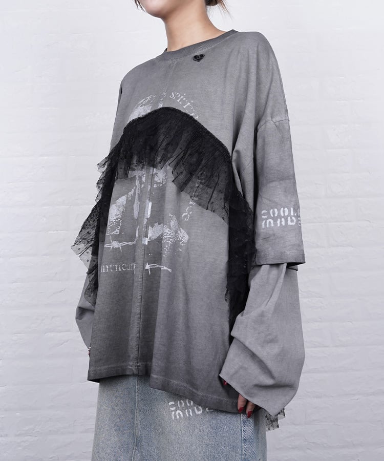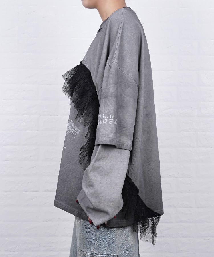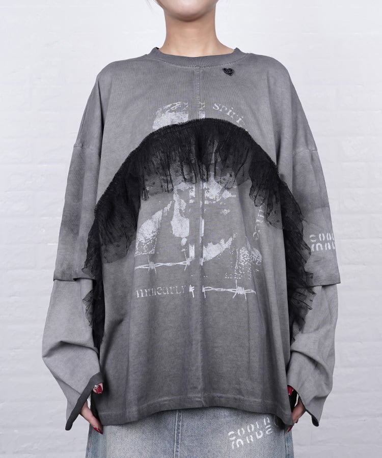 キャッチーなプリント×チュール使いが