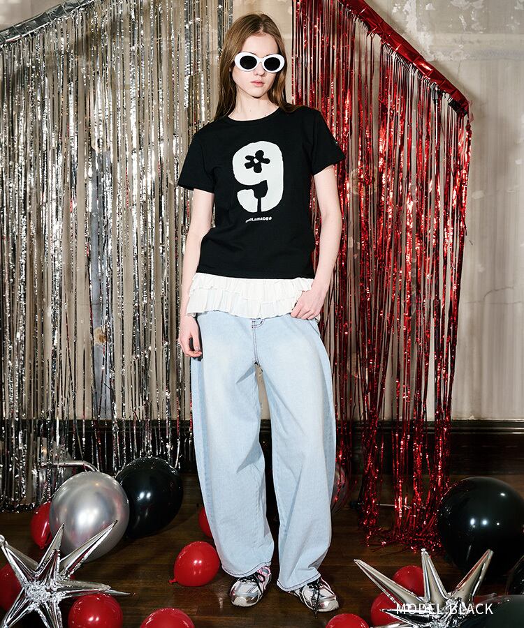 COOLA 9 フラワープリントコンパクトTシャツ (BLACK) CQ-48096