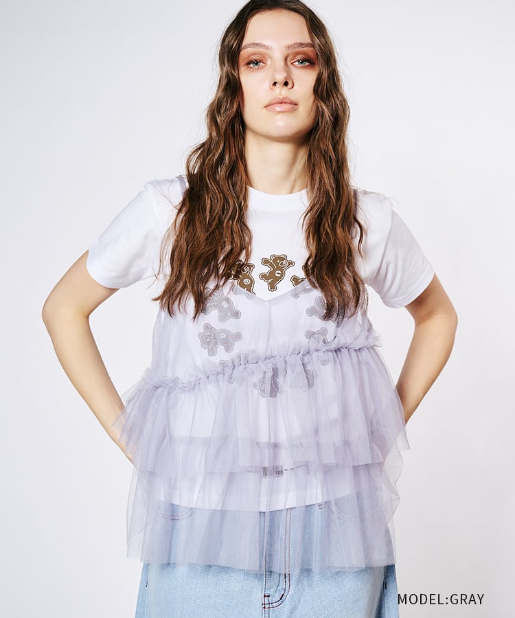 アシメトリーフリルチュールキャミTOPS (GRAY) CQ-48105