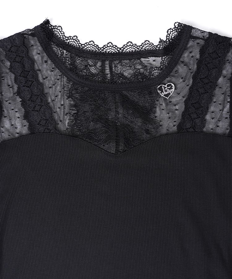 ハートロゴショルダーレースキャミTOPS (BLACK) CQ-48112