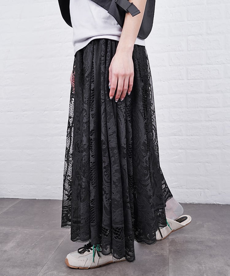 【直営限定ITEM】レースフレアスカート (BLACK) CQ-48149H