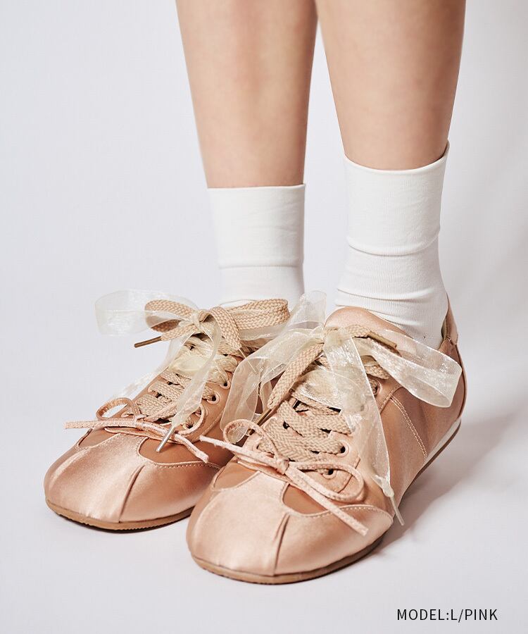 サテンバレリーナリボンスニーカー (L/PINK) CQ-48542